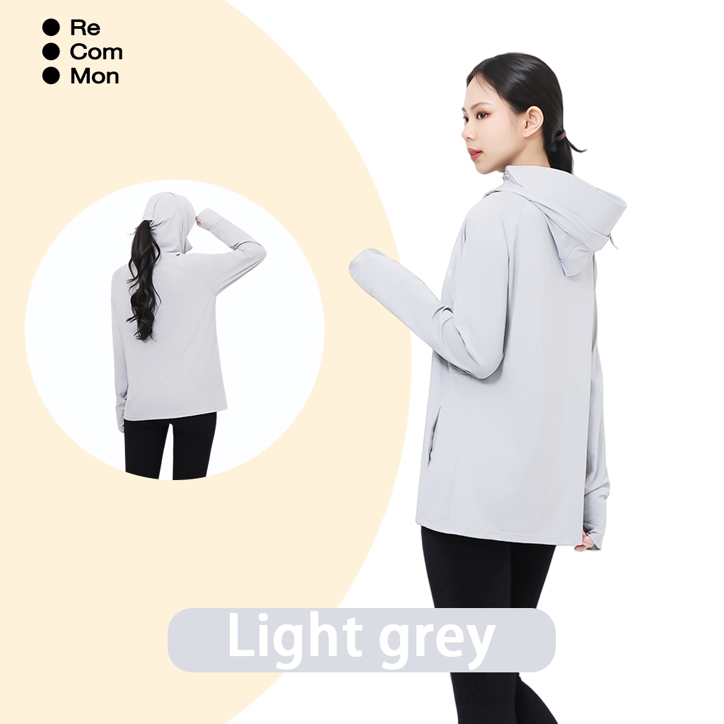 ReComMon Jaket Sport Anti UV UPF100+ Jaket Outdoor Wanita Pria, Hoodie Ringan, 2418