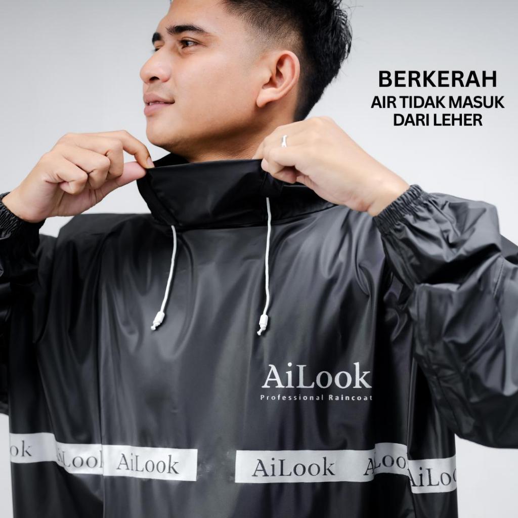 AILOOK Jas Hujan Hoodie Exclusive Full Seal Press Anti Rembes Setelan Pria Wanita Bahan PVC Karet Tebal Kuat Elastis Original 100 PERSEN