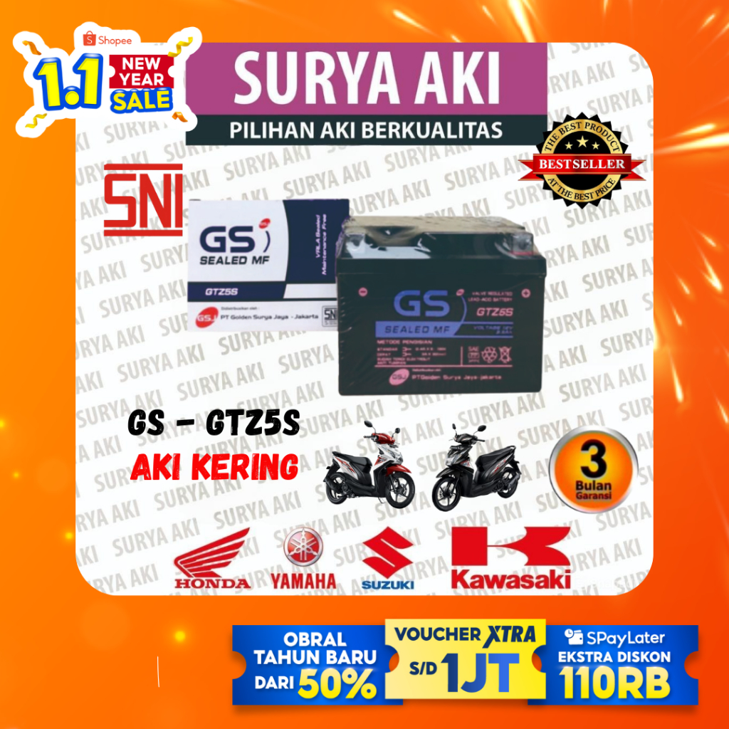 Aki Motor GTZ5S MF Aki Kering Motor Honda Beat Aki Vario 110 Supra X 125 Scoopy Spacy Blade Revo New