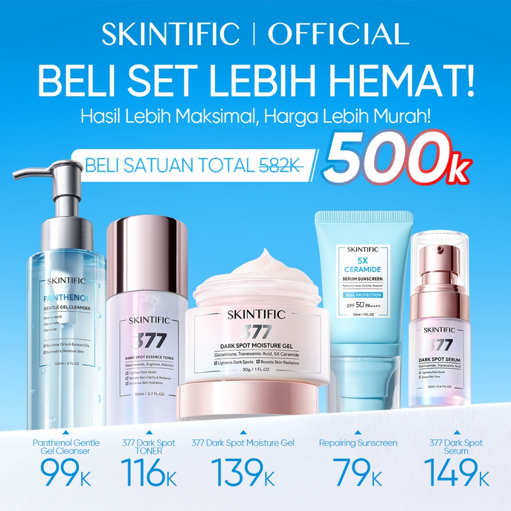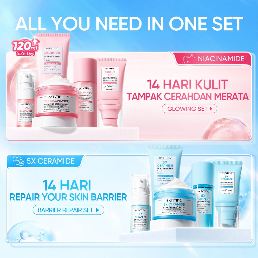 SKINTIFIC OFFICIAL STORE [5PCS] FULL SERIES SKINCARE SET - FACIAL WASH + TONER + SERUM + MOISTURIZER + SUNSCREEN