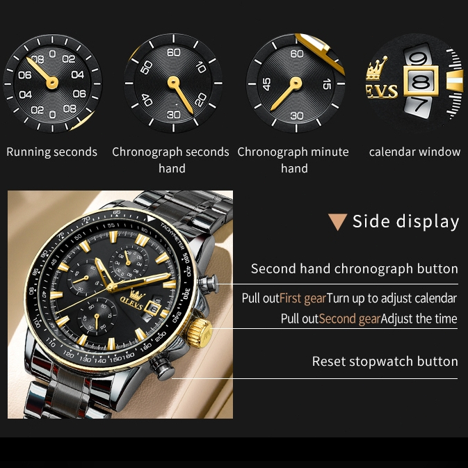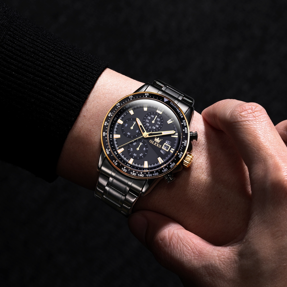 OLEVS Jam Tangan Pria Anti Air Original 100 PERSEN Resmi Cowok Rantai Analog Kuarsa Bisnis Casual Hitam Putih Men Watch Model TY705