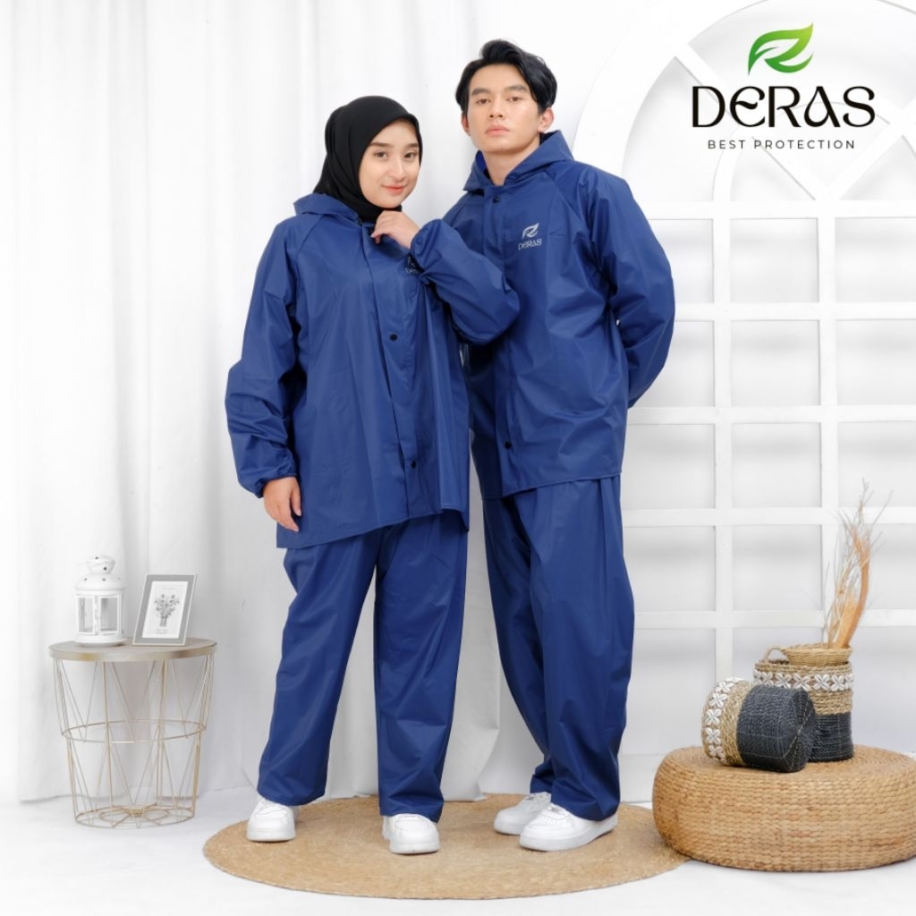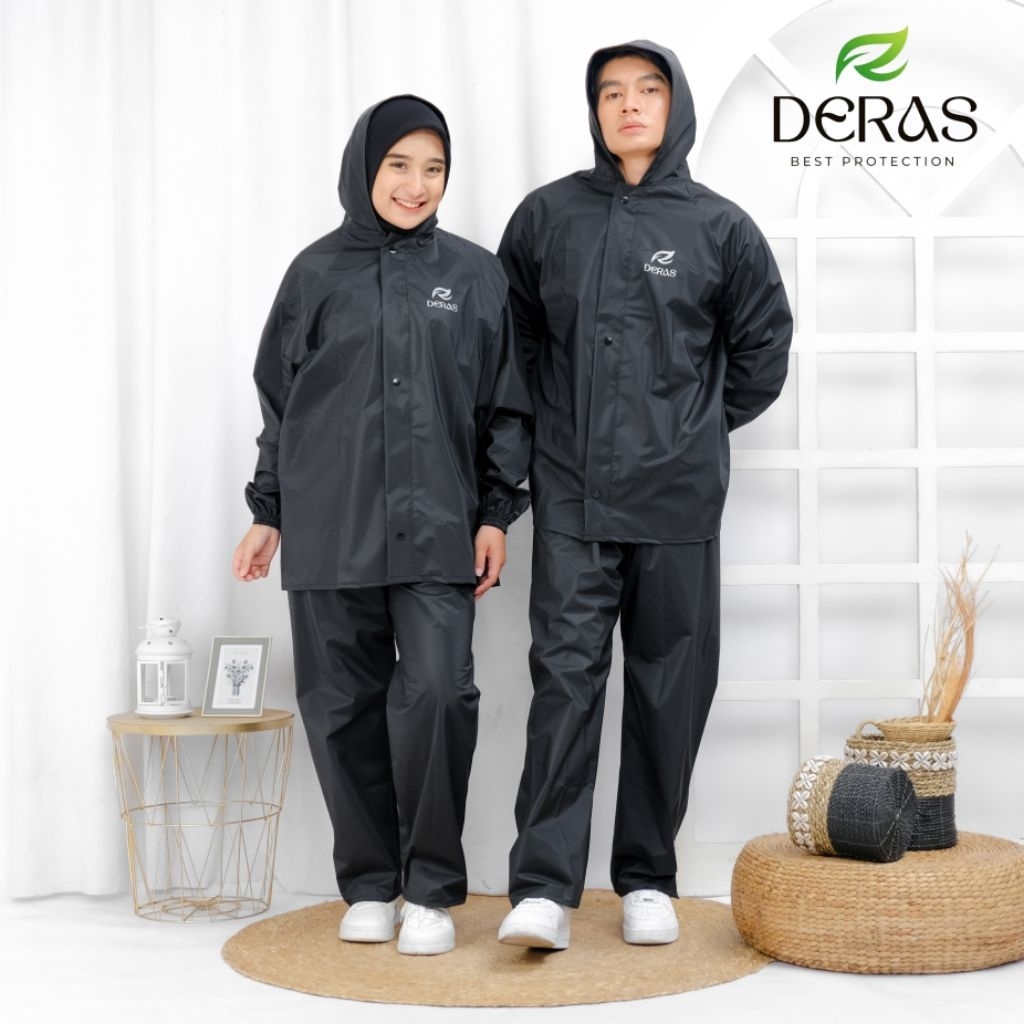 DERAS JAS HUJAN, Mantel Setelan Dewasa Pria/Wanita Tebal Elastis Bahan PVC Super Premium