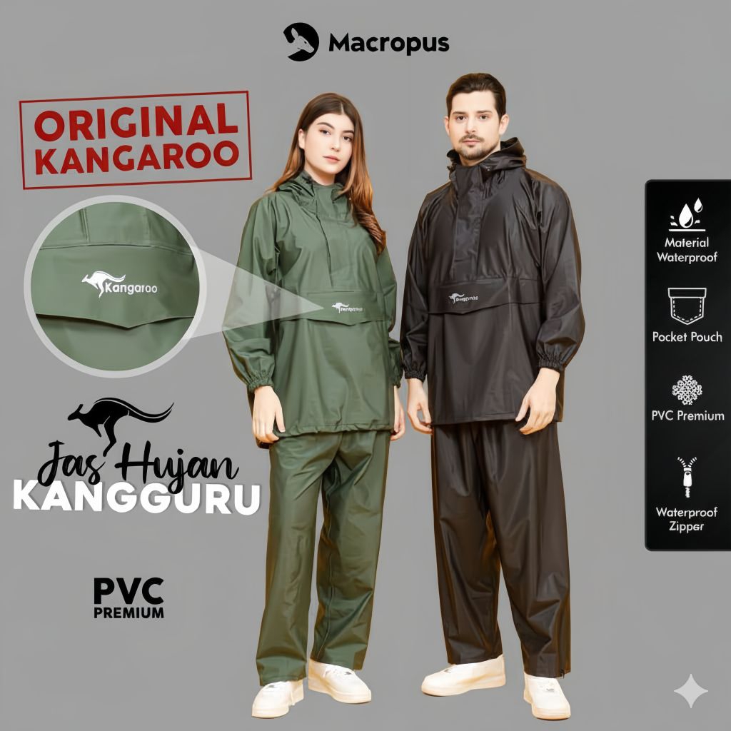 MACROPUS Jas Hujan KANGAROO RAINCOAT Jas Hujan Saku Kangguru Anti Bocor Jas Hujan Tebal Saku Kangguru Pria Wanita Dewasa