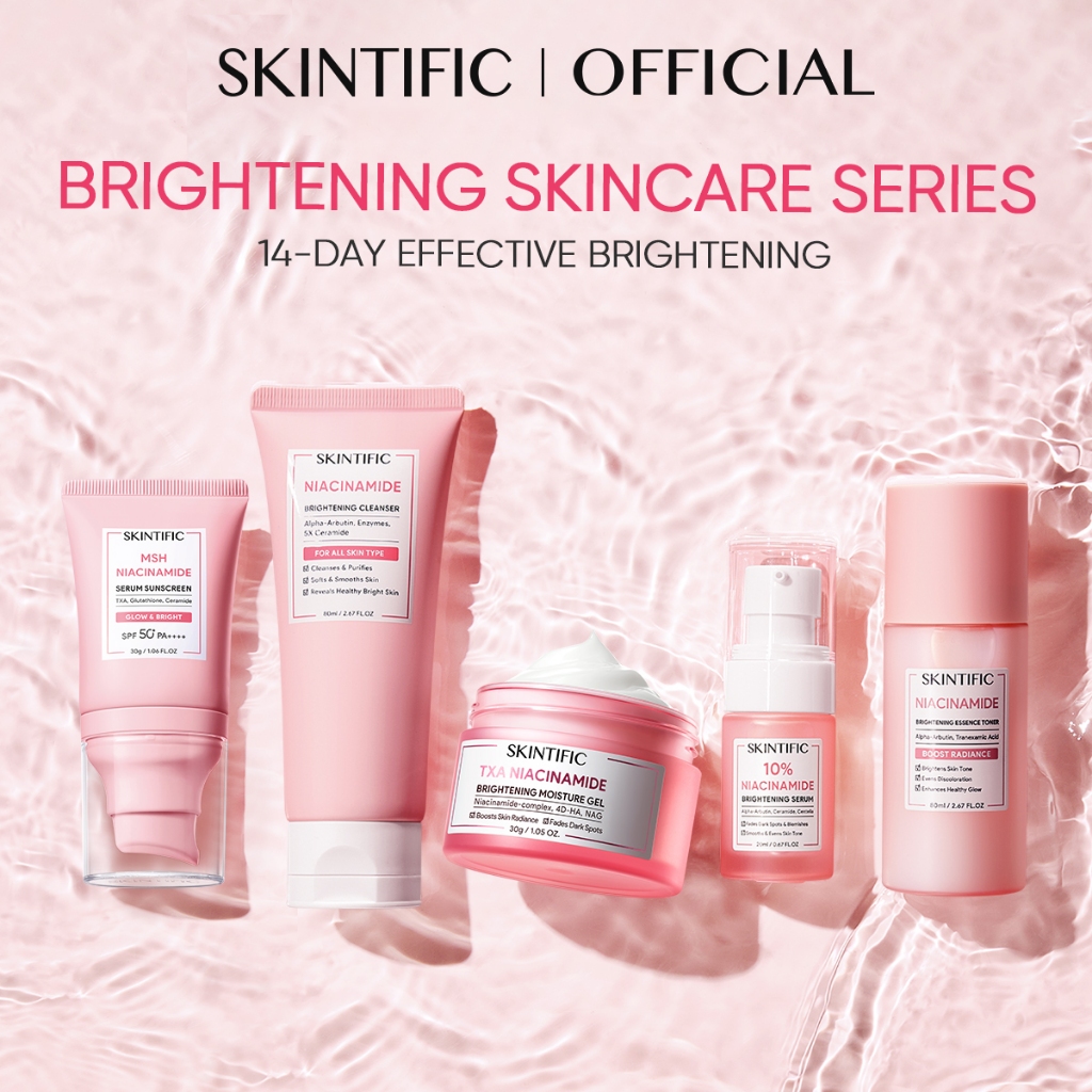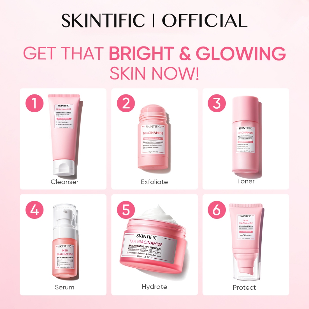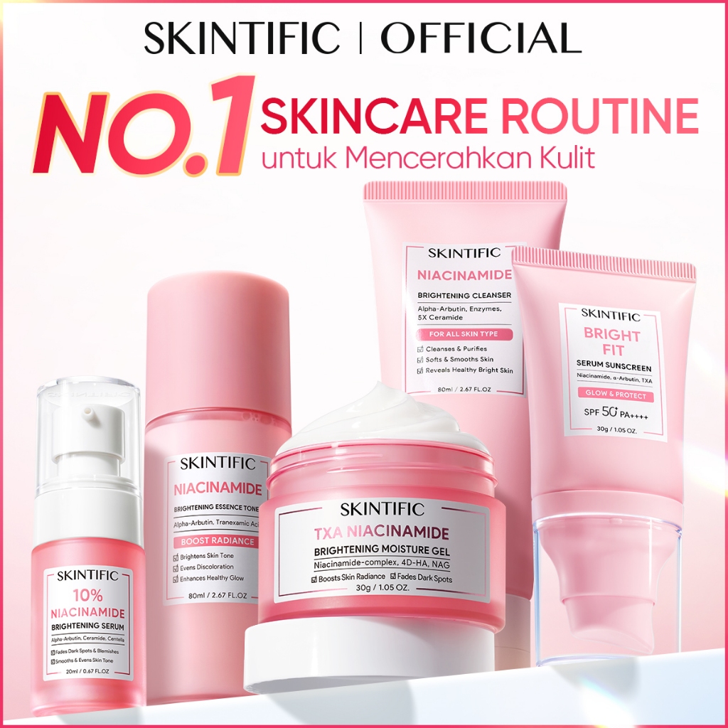 Skintific Official Store Niacinamide Brightening Series 5-in-1 Set Serum Moisturizer Gel Toner Cleanser Clay Stick