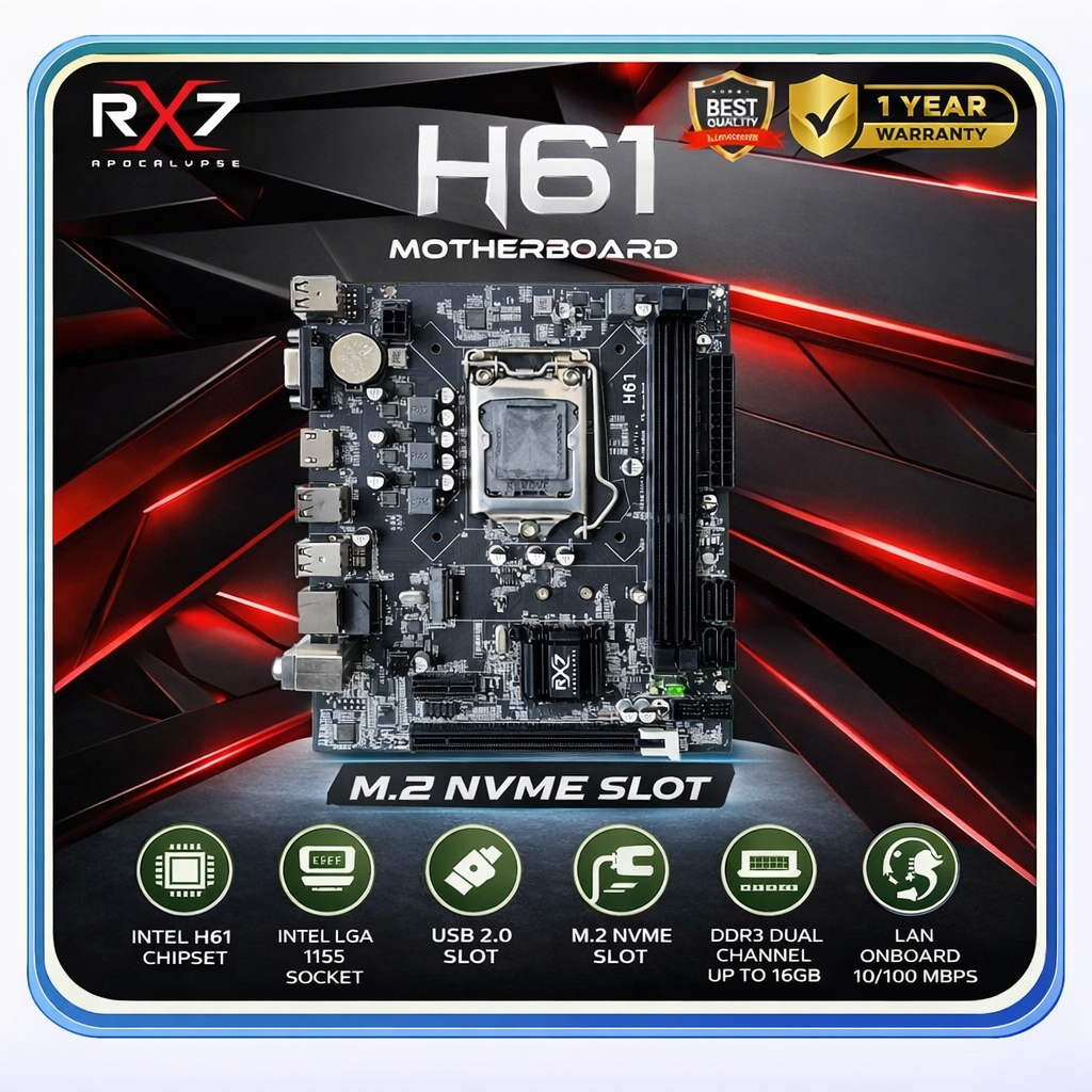 Motherboard RX7 H61 LGA 1155 DDR3 H61 (gen2 dan gen3) Mainboard Support Nvme