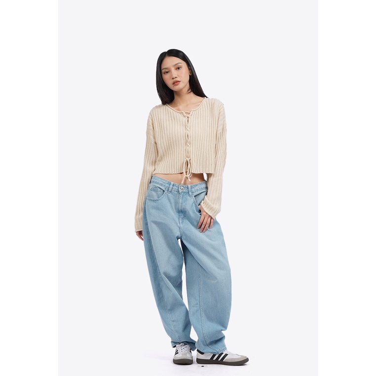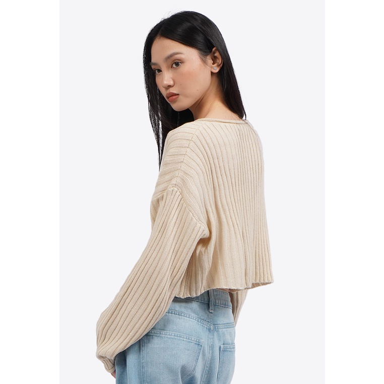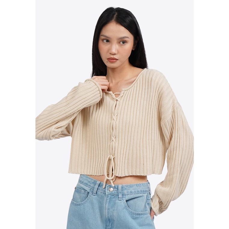COLORBOX Lace Up Long Sleeve Knit Top Ecru