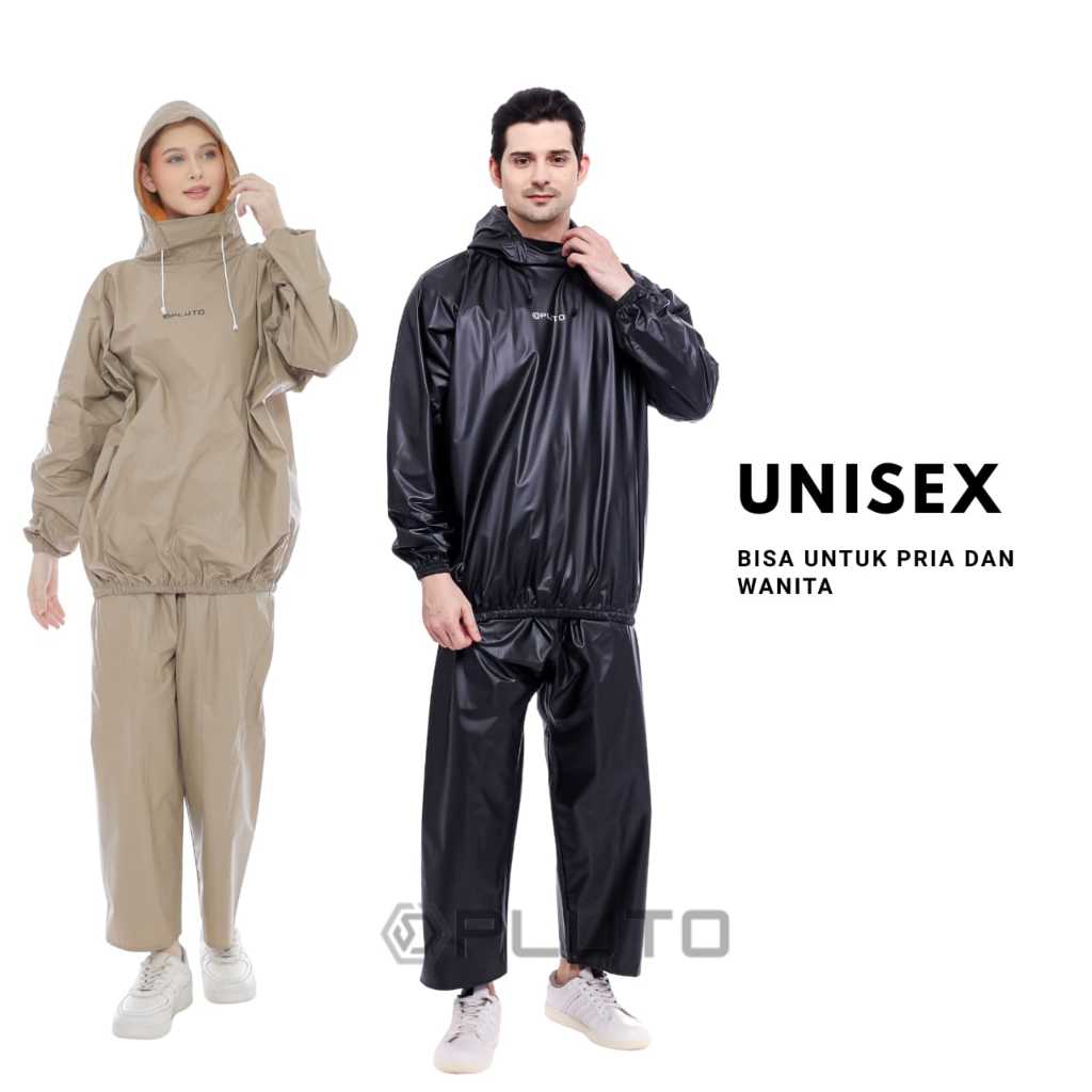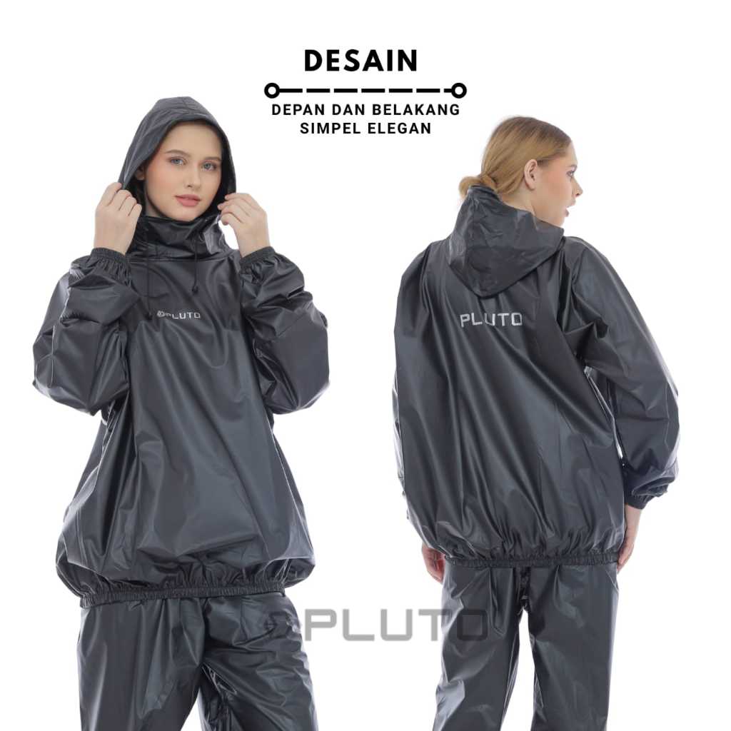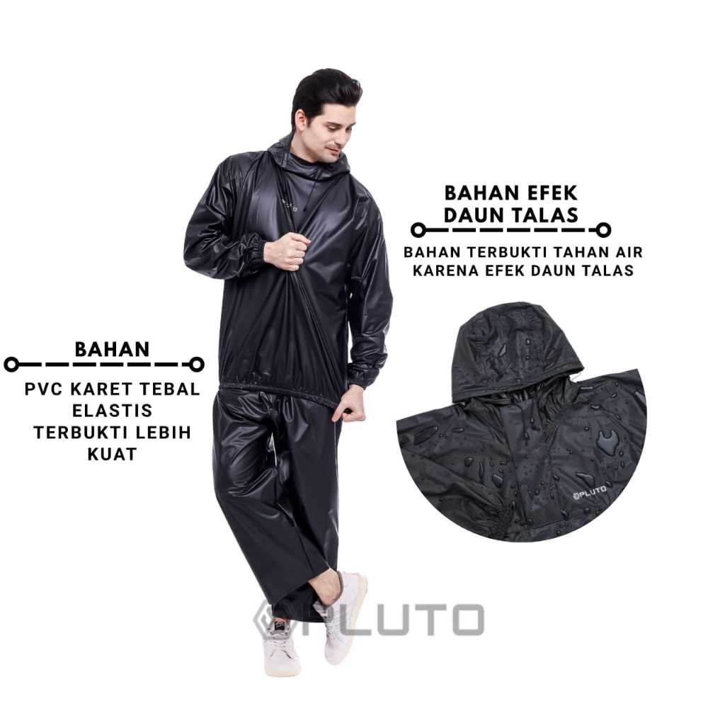 PLUTO Jas Hujan HOODIE Anti Rembes Bahan PVC Tebal Elastis Setalan Pria Wanita