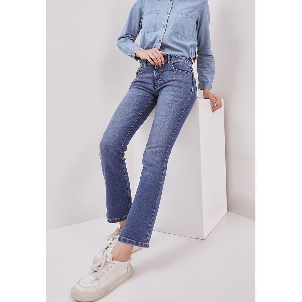 DUST Celana Mid Rise Bootcut Jeans Laira Medium Light Blue (D. 31307)