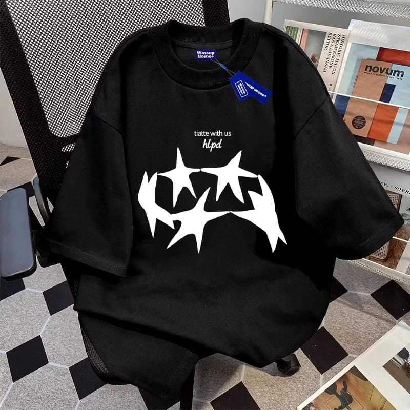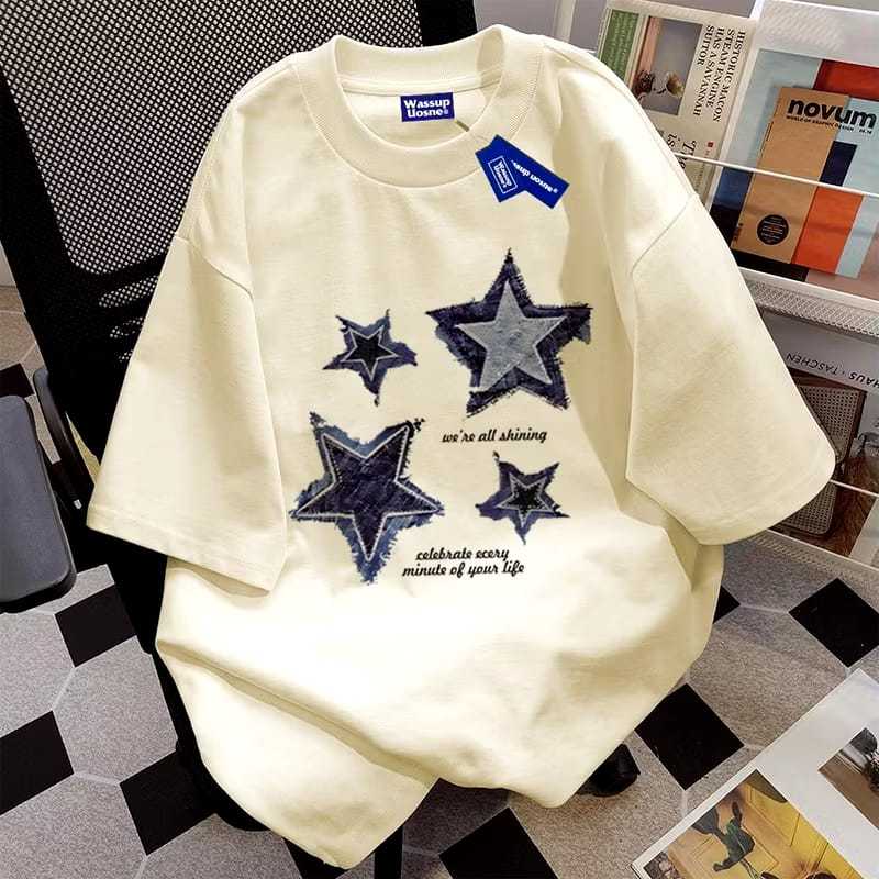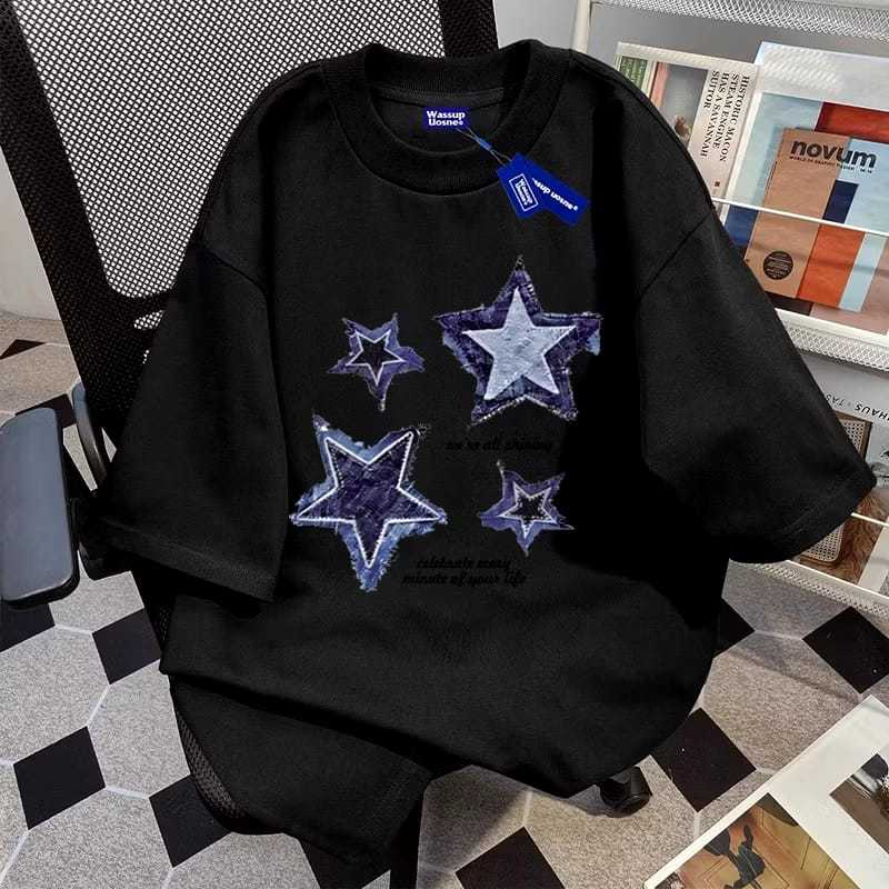 KAOS GAYA AMERIKA HIPD BINTANG PERCETAKAN BAJU ATASAN WANITA TERBARU KAOS PRIA BAHAN KATUN COMBED Kaos Unisex Oversize Vintage 100 PERSEN Cotton