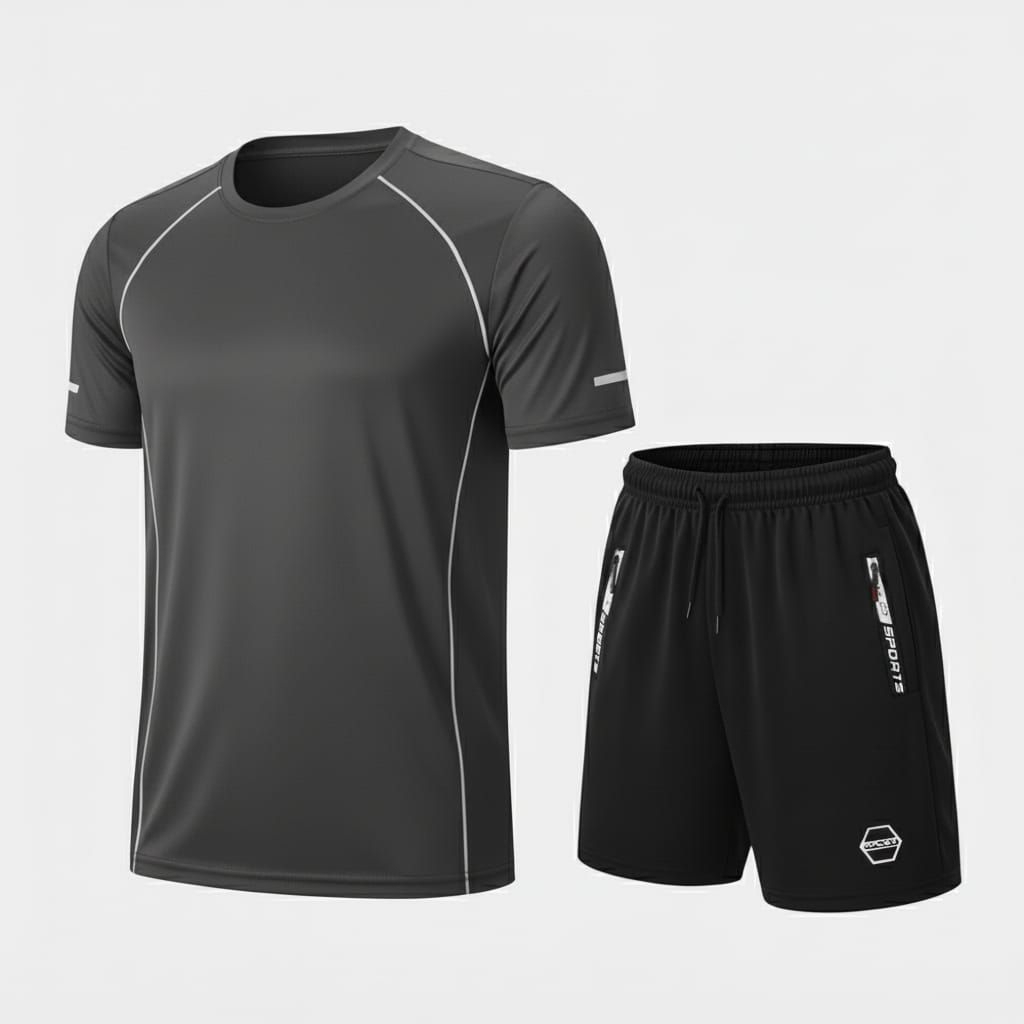 1 Set Stelan Pakaian Olahraga Pria Sport Kaos + Celana Pendek ada kantong Kanan Kiri