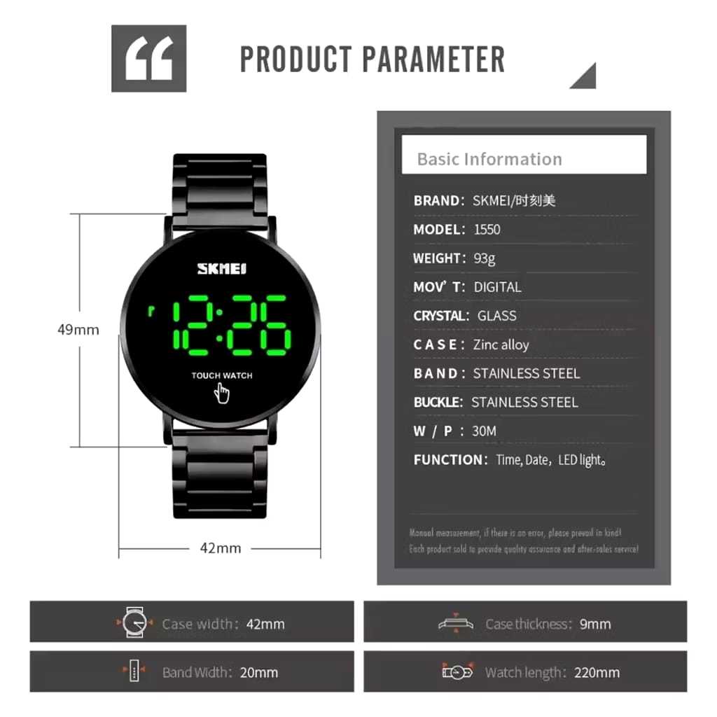 SKMEI 1550 Digital Watch Pria Stainless Steel Touch Display WK-SBY