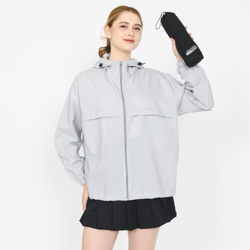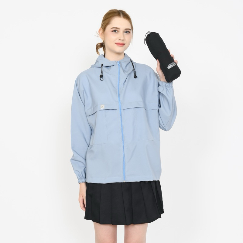 GRATIS pouch Jacke Mighty.Up - Jaket Olahraga Parasut Polos Pria/Wanita Sauna Suit, Jogging, Lari, Bersepeda, Despo, Gym