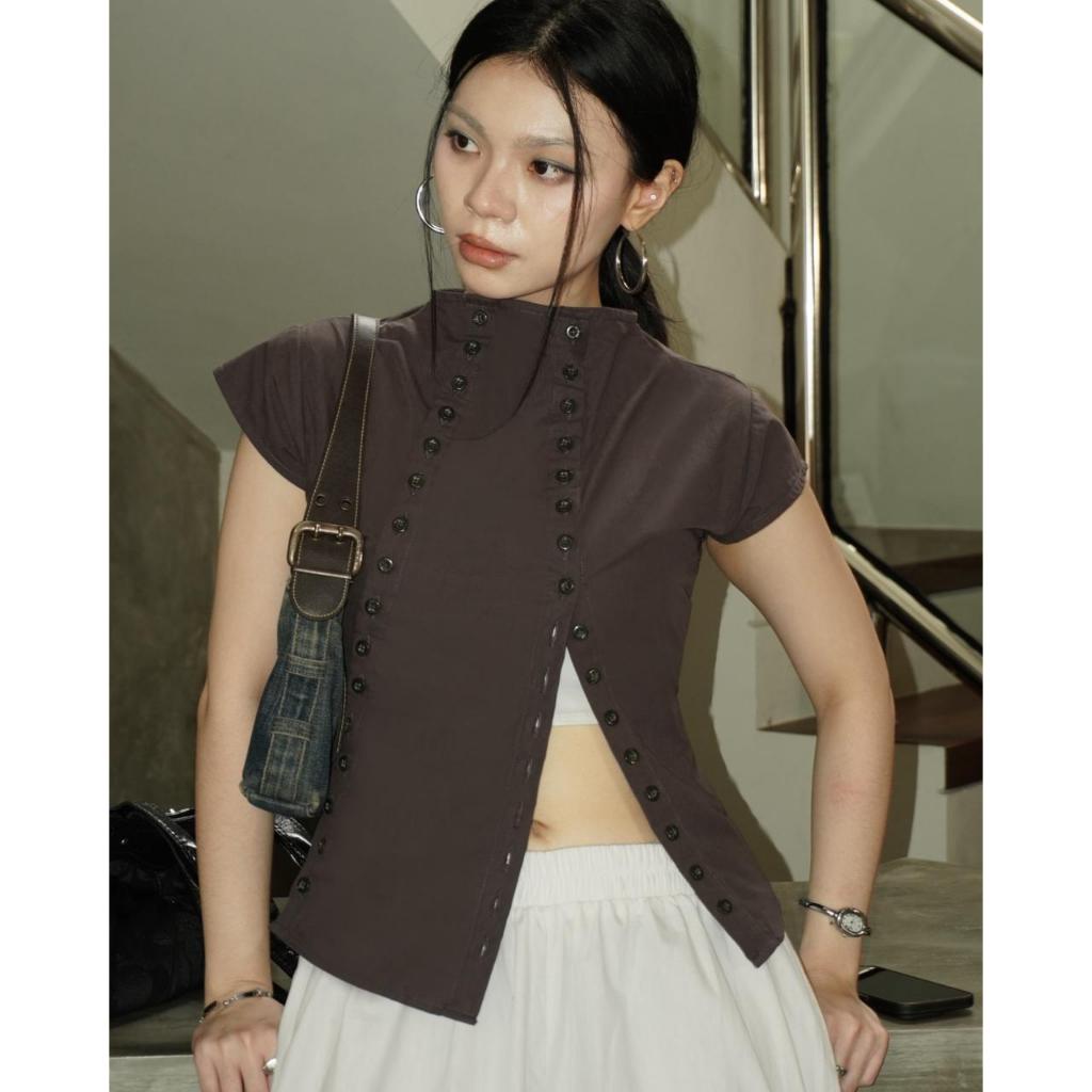 Wear Sarey - Aiko Fitted Shirt - Short Sleeve - Vintage-Inpired - Neo - Japandi - Y2K