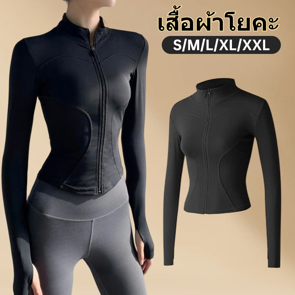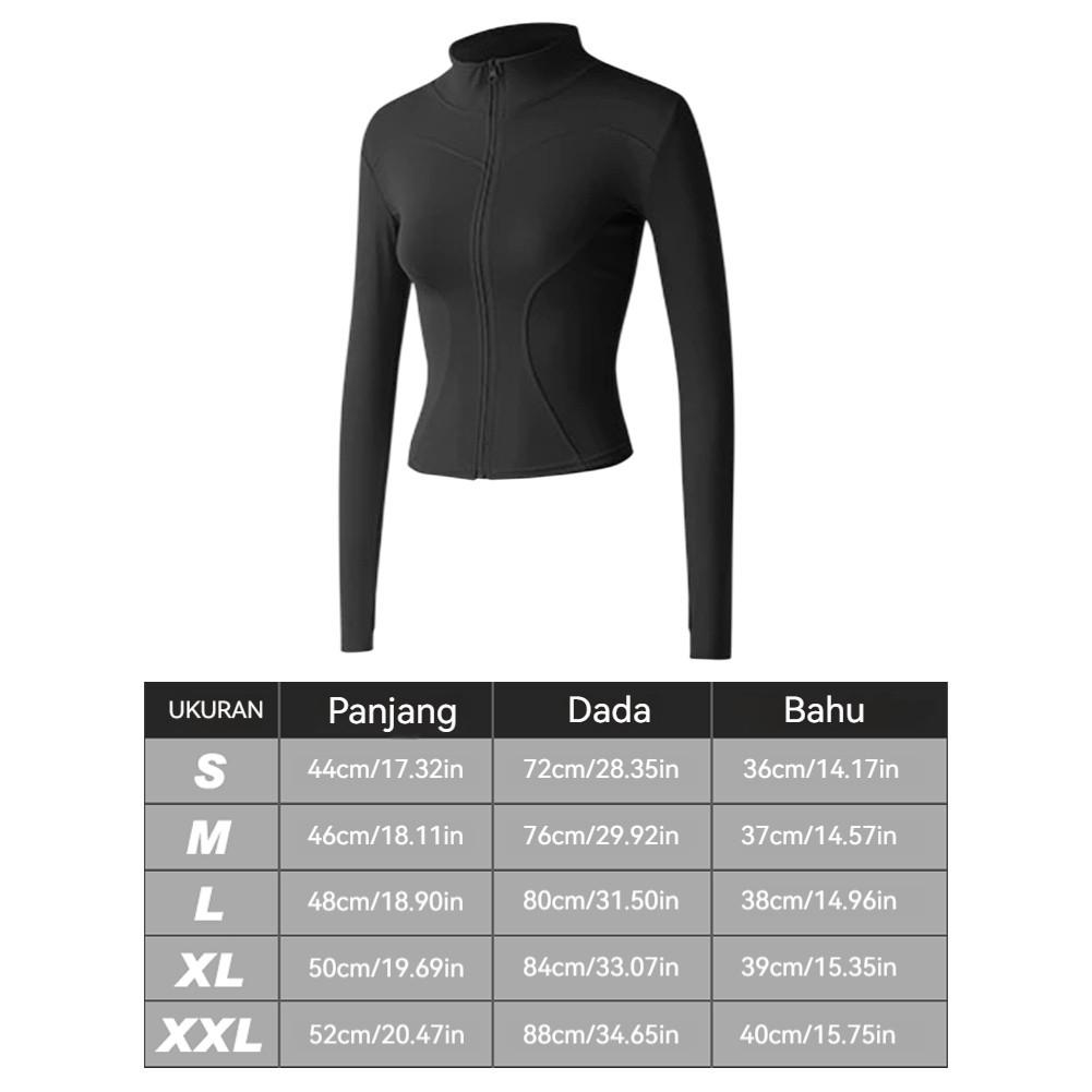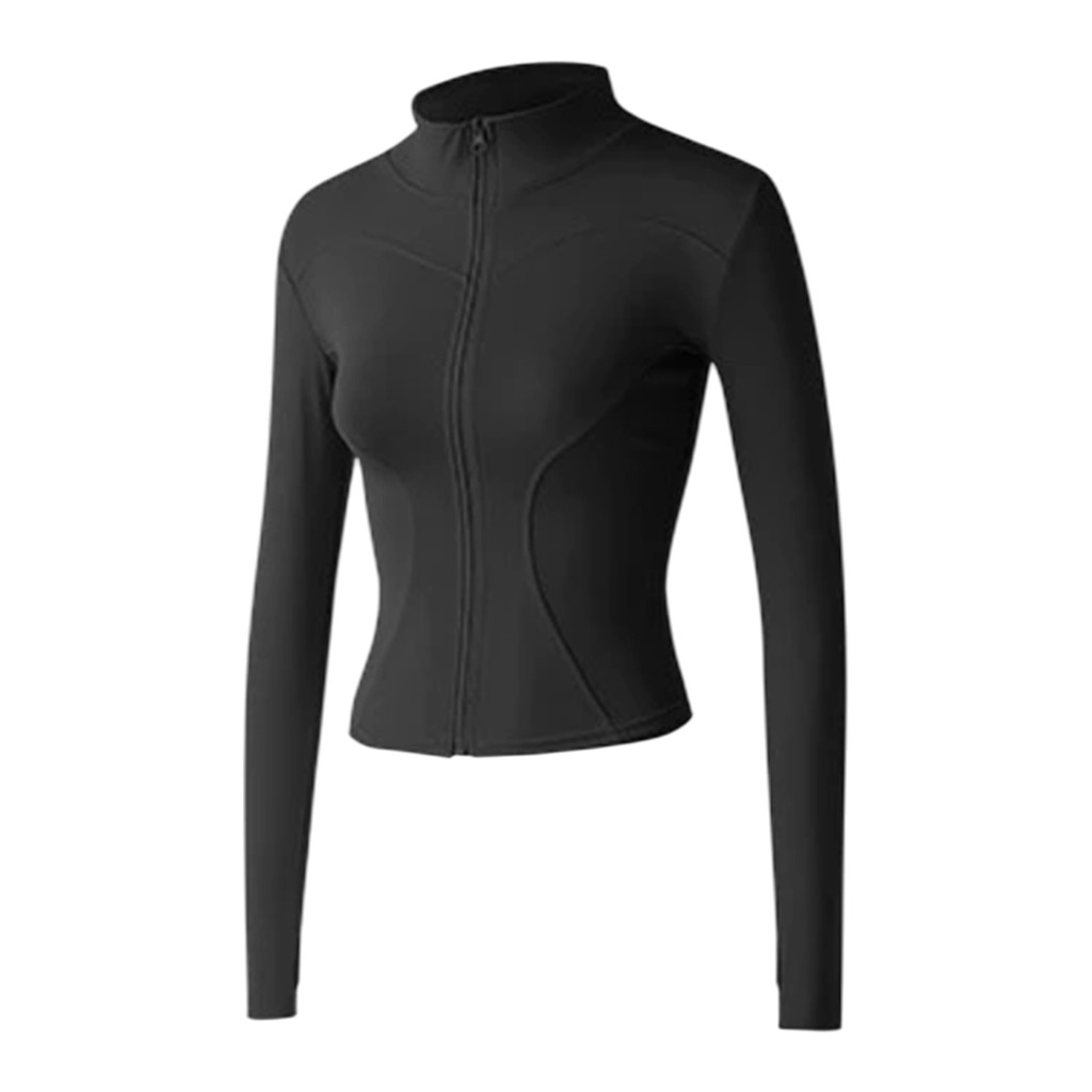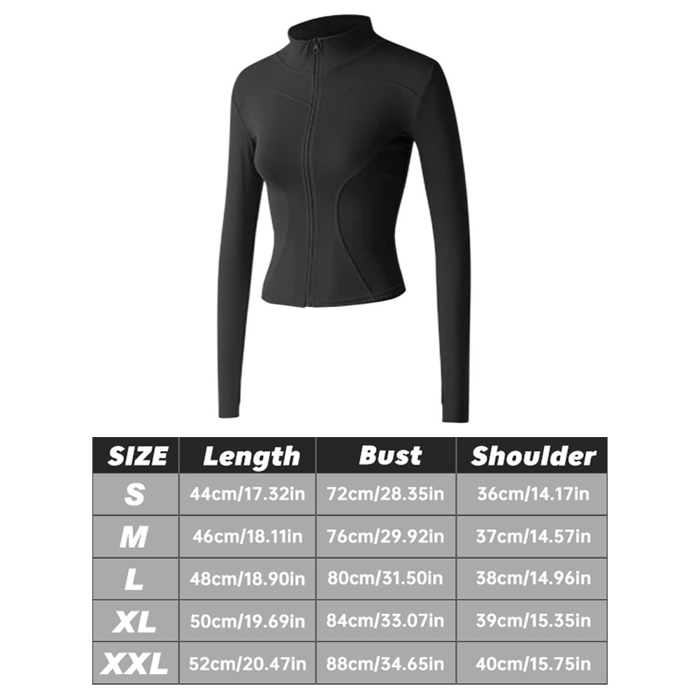 Wanita Jaket Olahraga Ritsleting Penuh dengan Lubang Ibu Jari Lembut Pas Slim untuk Yoga Gym Lari