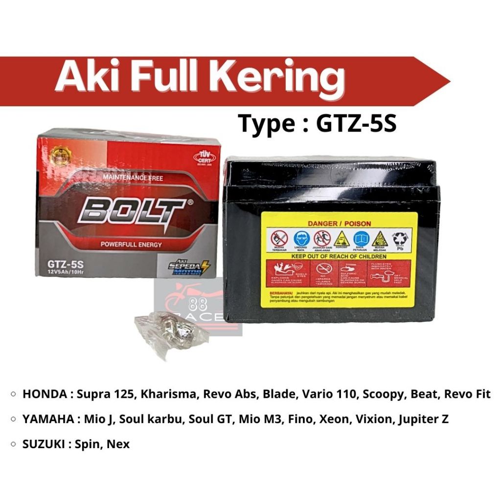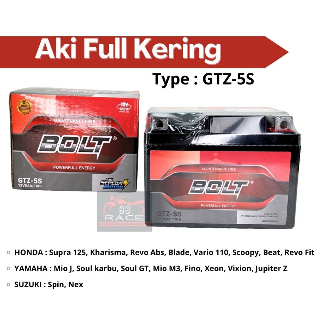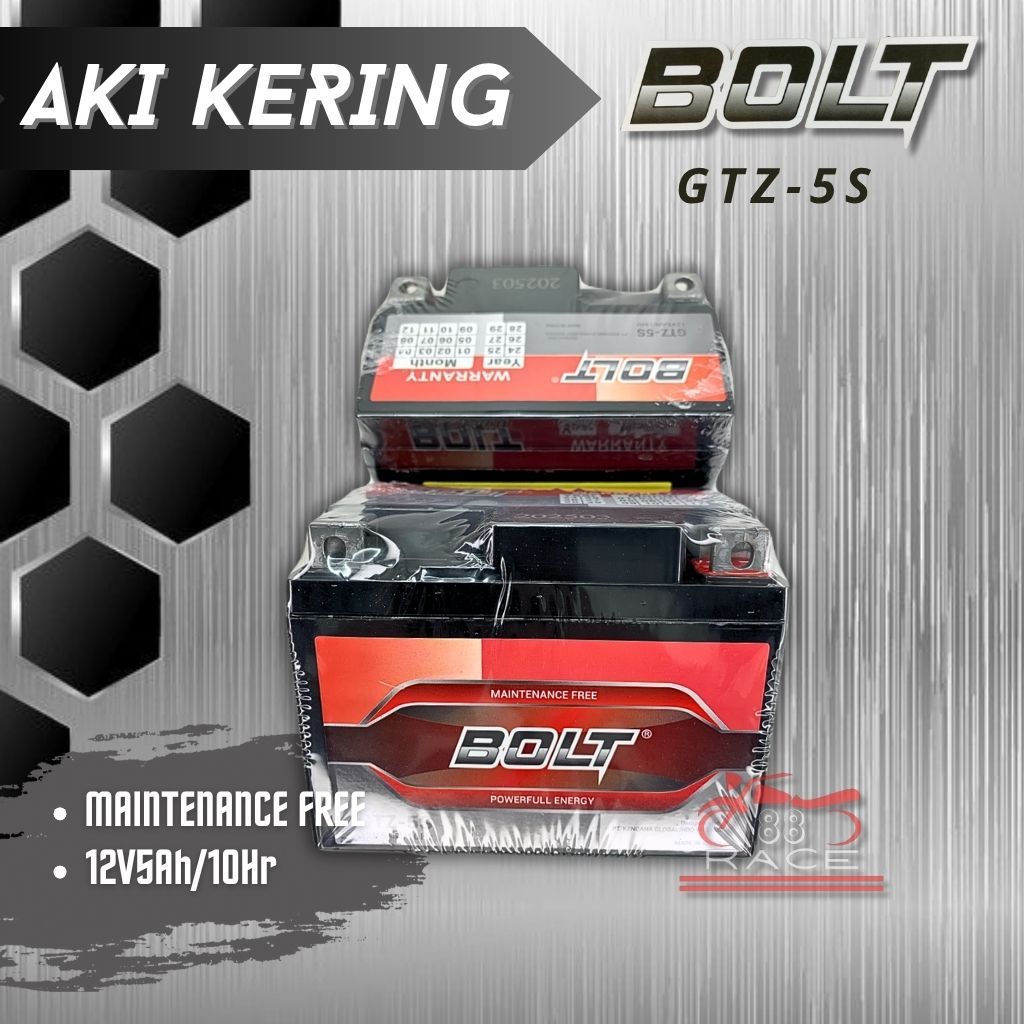 Aki Full Kering GTZ-5S 12V5Ah/10Hr Merk BOLT | Batrei motor kering gtz5s kharisma beat jupiter