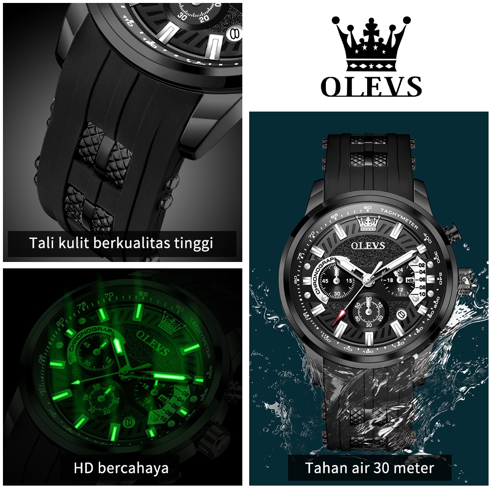 OLEVS Jam Tangan Pria Anti Air Original Model Terbaru Kemewahan Kalender Luminous Hitam Man Watch