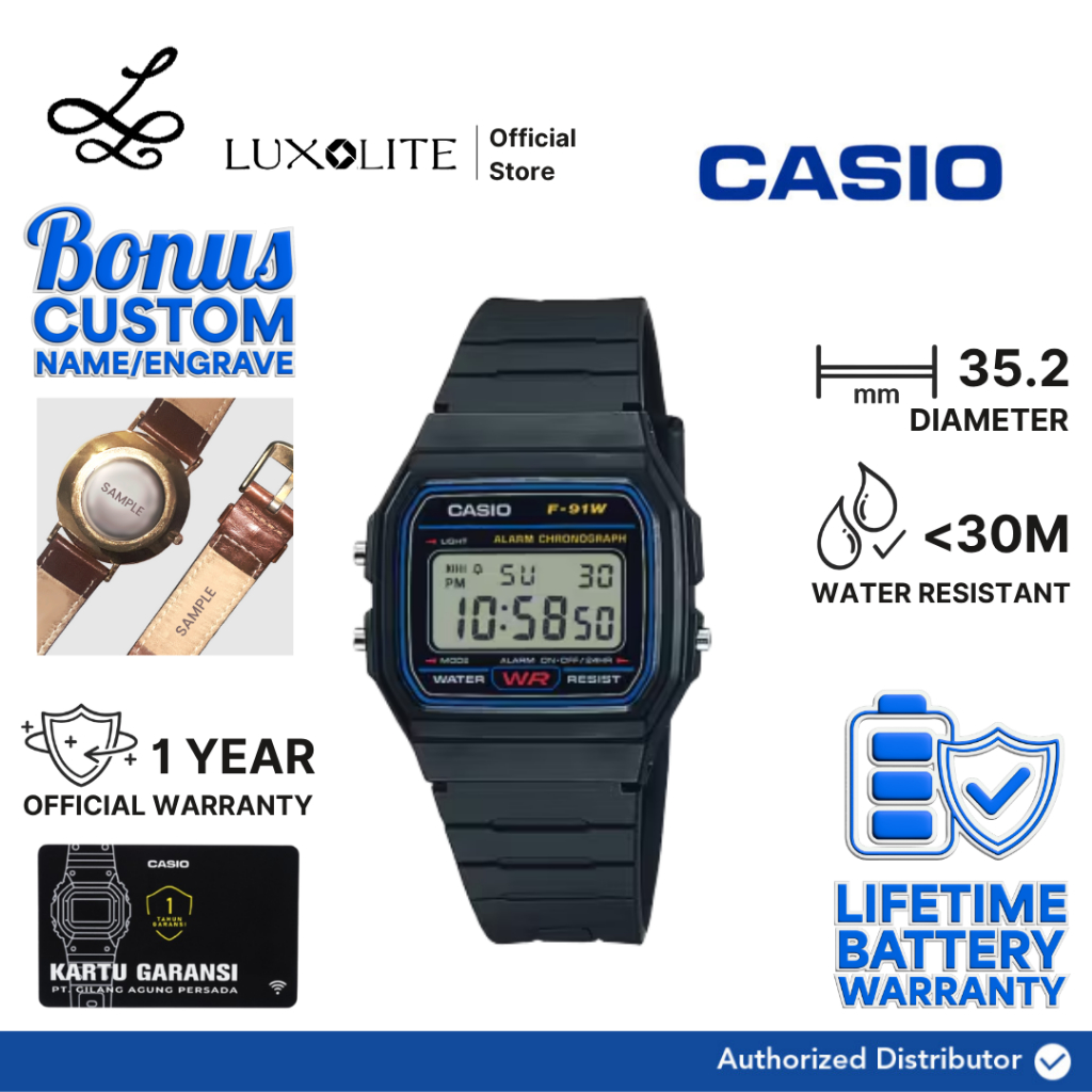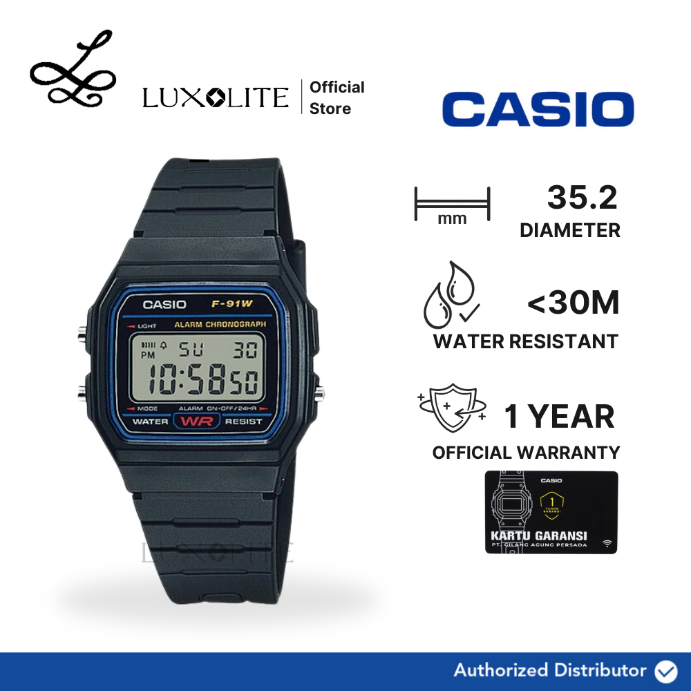 [Luxolite] CASIO Jam Tangan Unisex Digital F-91W-1DG/F-91W-1D/F-91W-1 Black Resin Strap