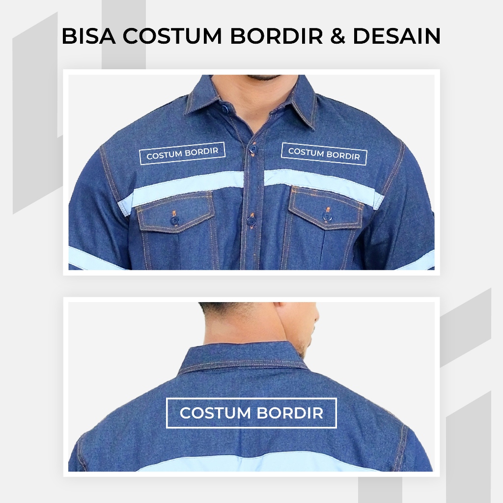 Baju Wearpack Kemeja Safety Jeans K3 Proyek Tambang Lengan Panjang - Pakaian Seragam Werpak Kerja Atasan Scotlite Lapangan Warna Denim Pria Wanita