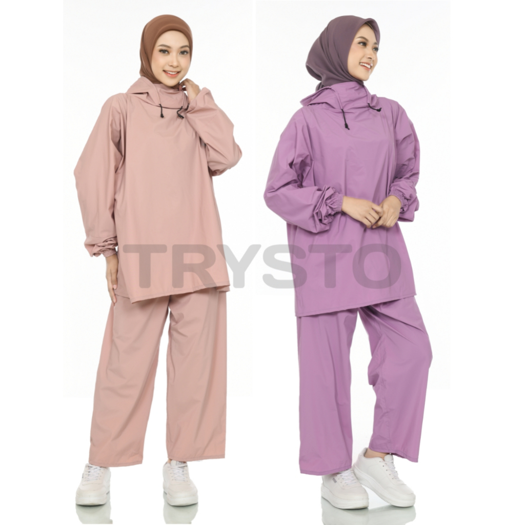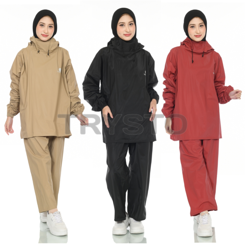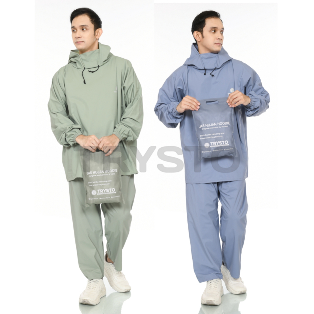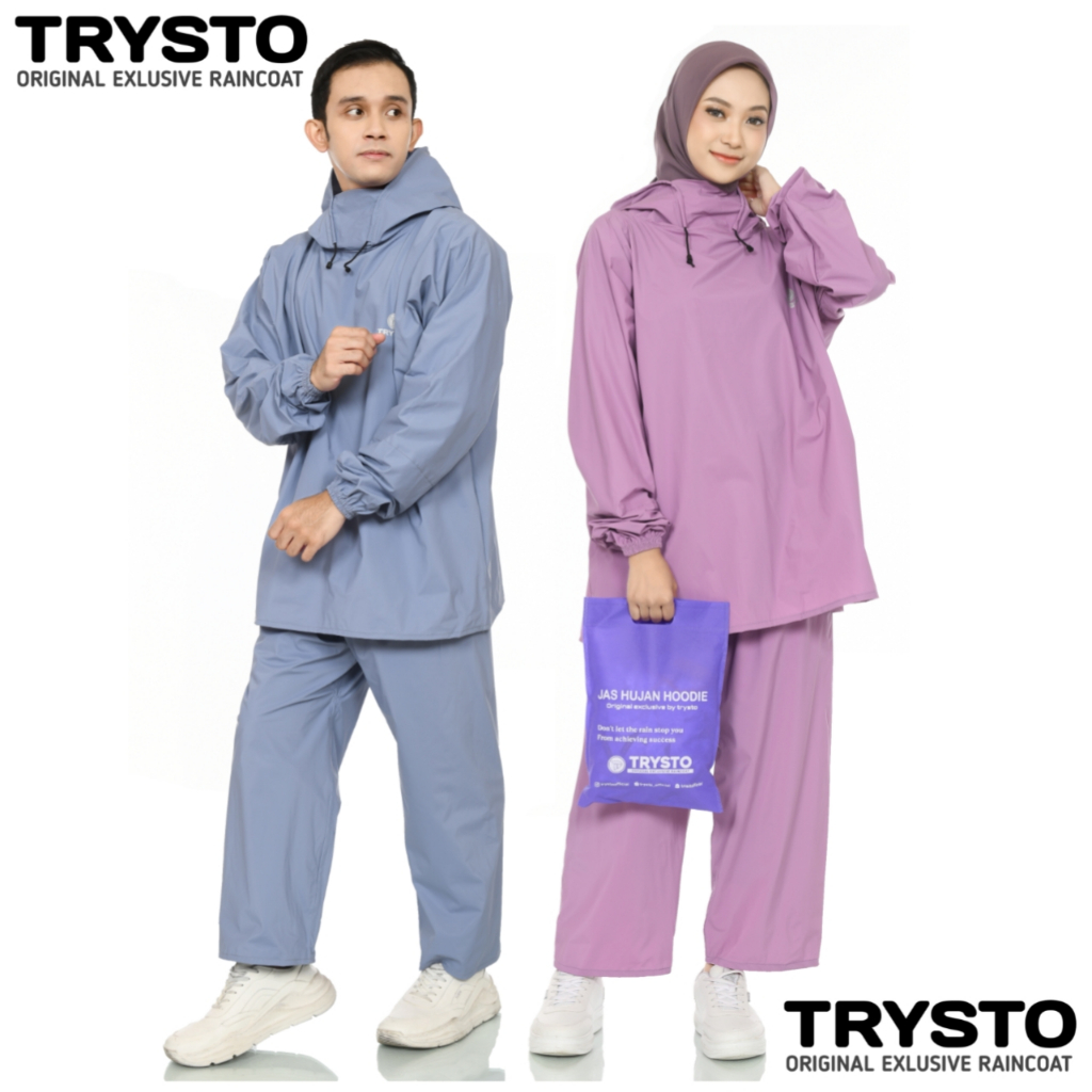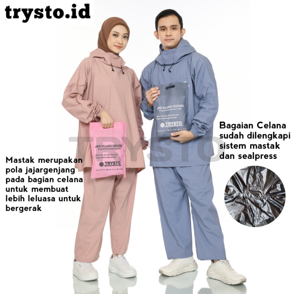 TERBARU JAS HUJAN HOODIE SETELAN PRIA WANITA DEWASA BAHAN PVC KUAT TEBAL ELASTIS BY TRYSTO