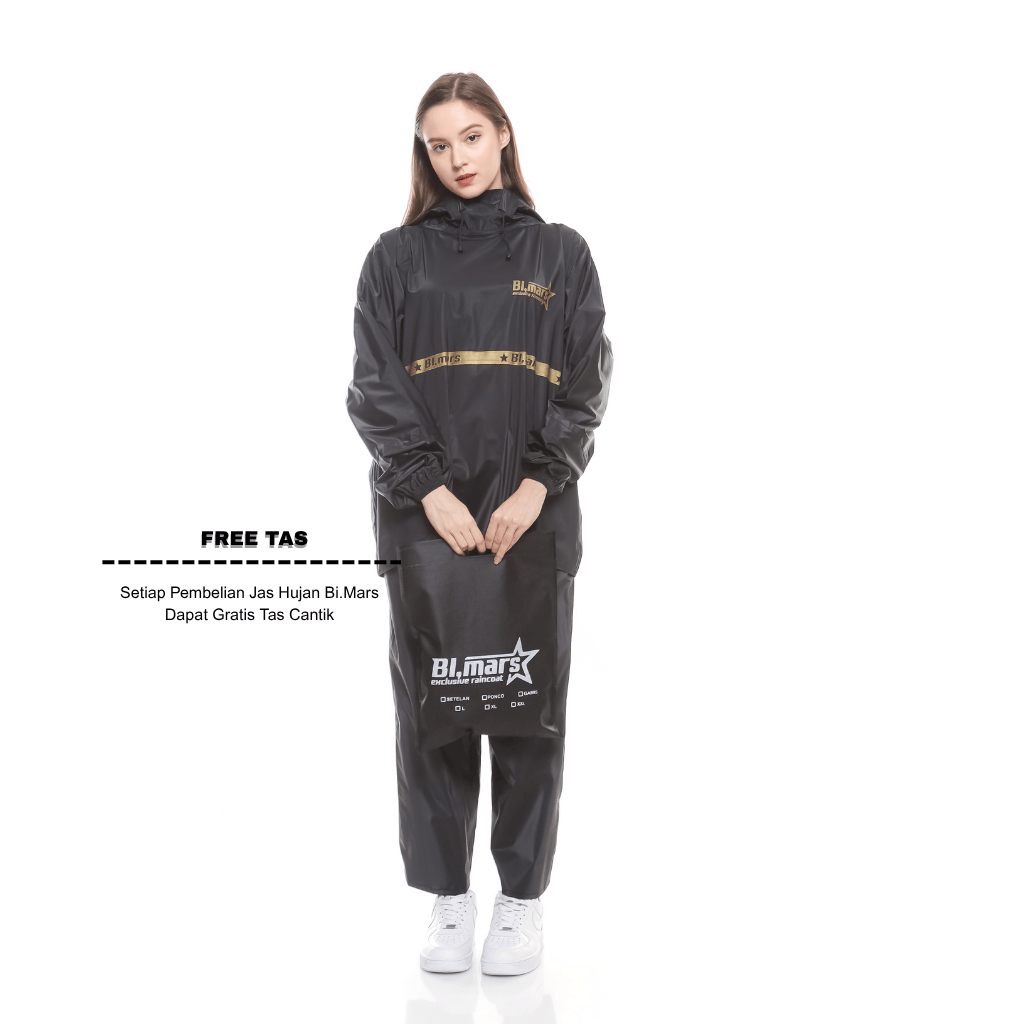 Jas Hujan Hoodie Terbaru Pria Wanita Bahan PVC 0,25 Tebal Elastis Anti Rembes Original Bi.Mars