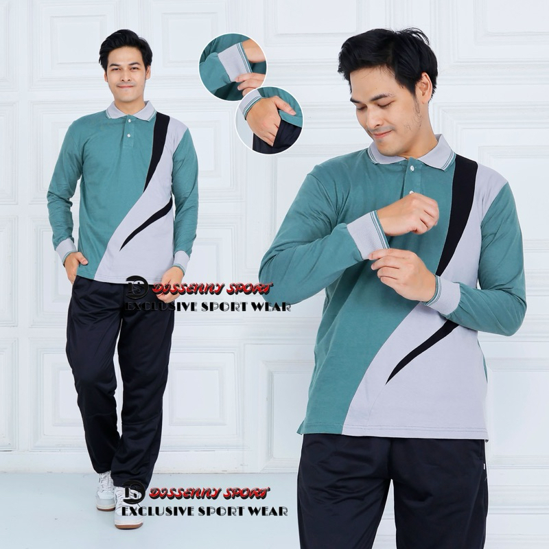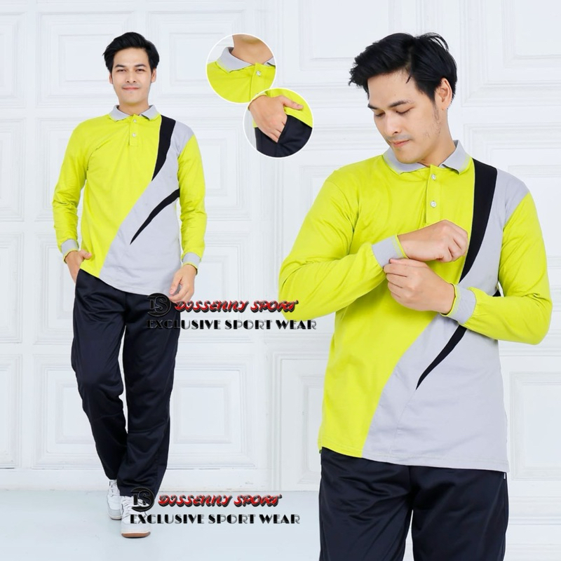 Stelan treining Kaos olahraga pria wanita lengan panjang