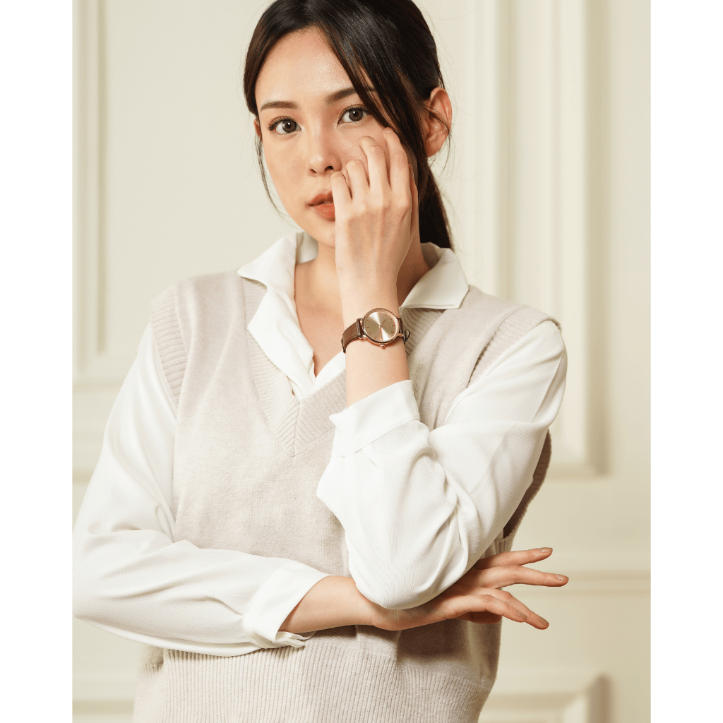 Jam Tangan Wanita Korea Analog Elegant Mewah Strap Kulit RoseG0LDS Anti Air Garansi Jisu Watch 75004