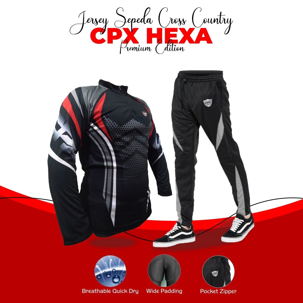 Setelan Jersey Sepeda CPX Sport Baju Gowes Pria MTB Roadbike Quick Dry Celana Panjang Padding Busa