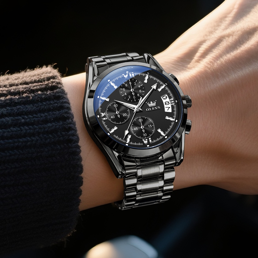 OLEVS Jam Tangan Pria Original Anti Air Fashion Sport Analog Chronograph Stainless Steel Watch Men