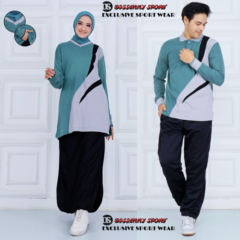 Setelan Olahraga Rocela/Stelan Olahraga muslim pakai rok/setelan kerah laki-laki lengan panjang