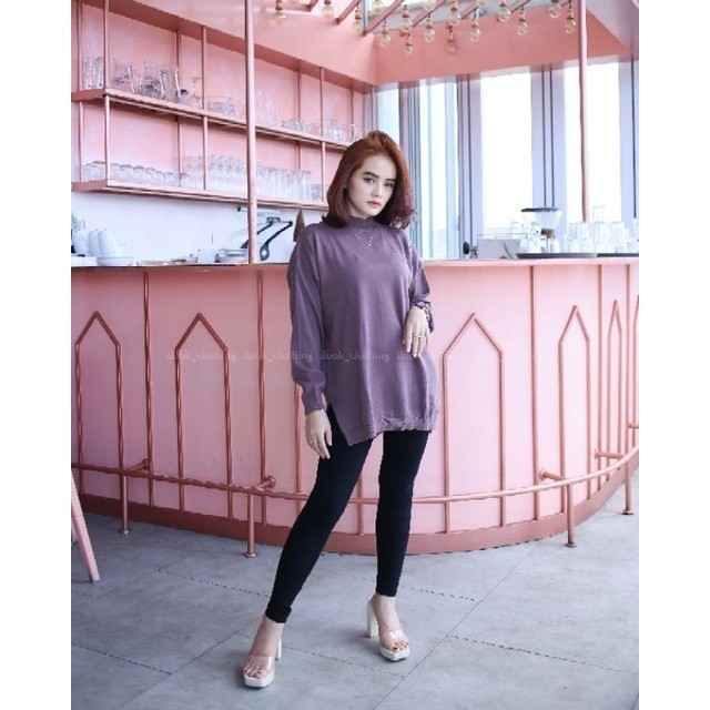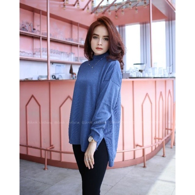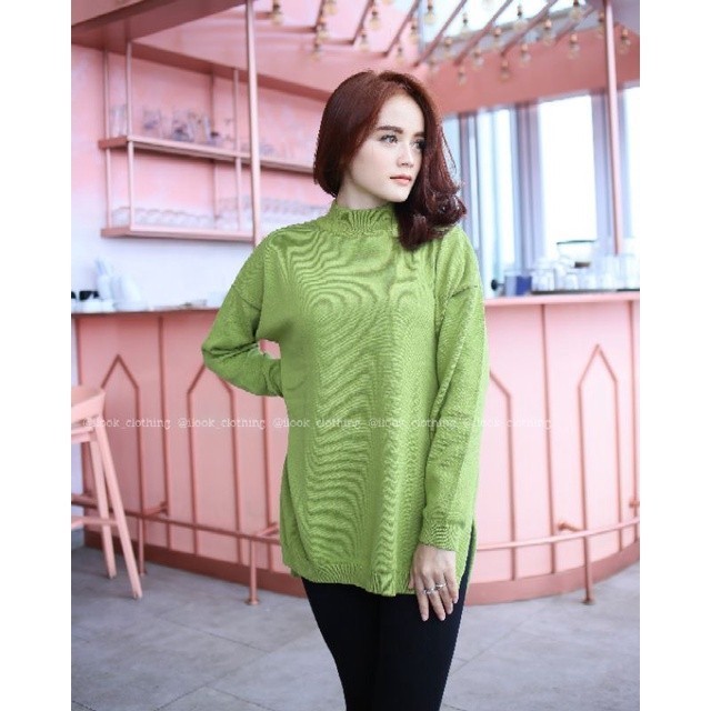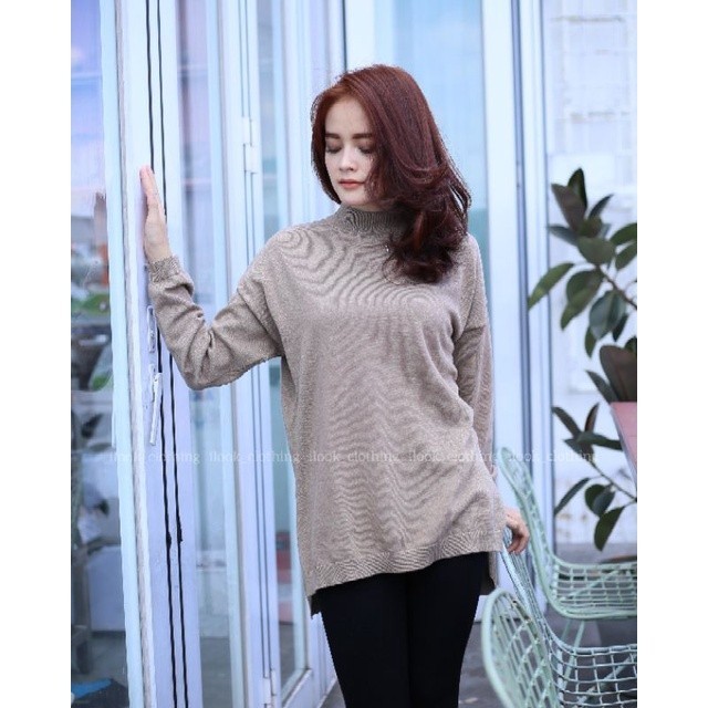 JOYLYN KNIT T0P atasan rajut wanita tangan panjang turtle neck polos