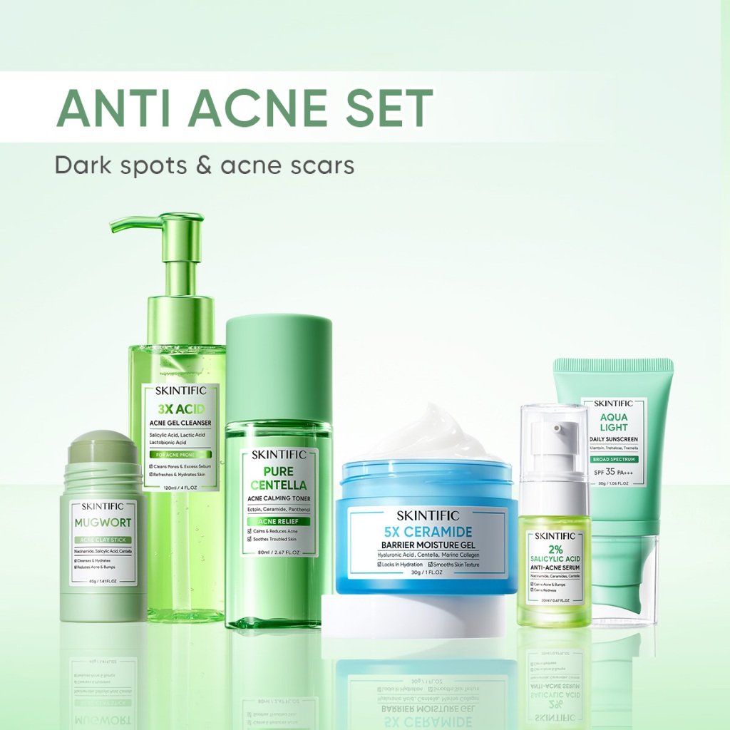 SKINTIFIC OFFICIAL STORE [6PCS!!] PAKET-SKINCARE SET SERUM MOISTURIZER GEL TONER SUNSCREEN CLEANSING MOUSS FACIAL WASH