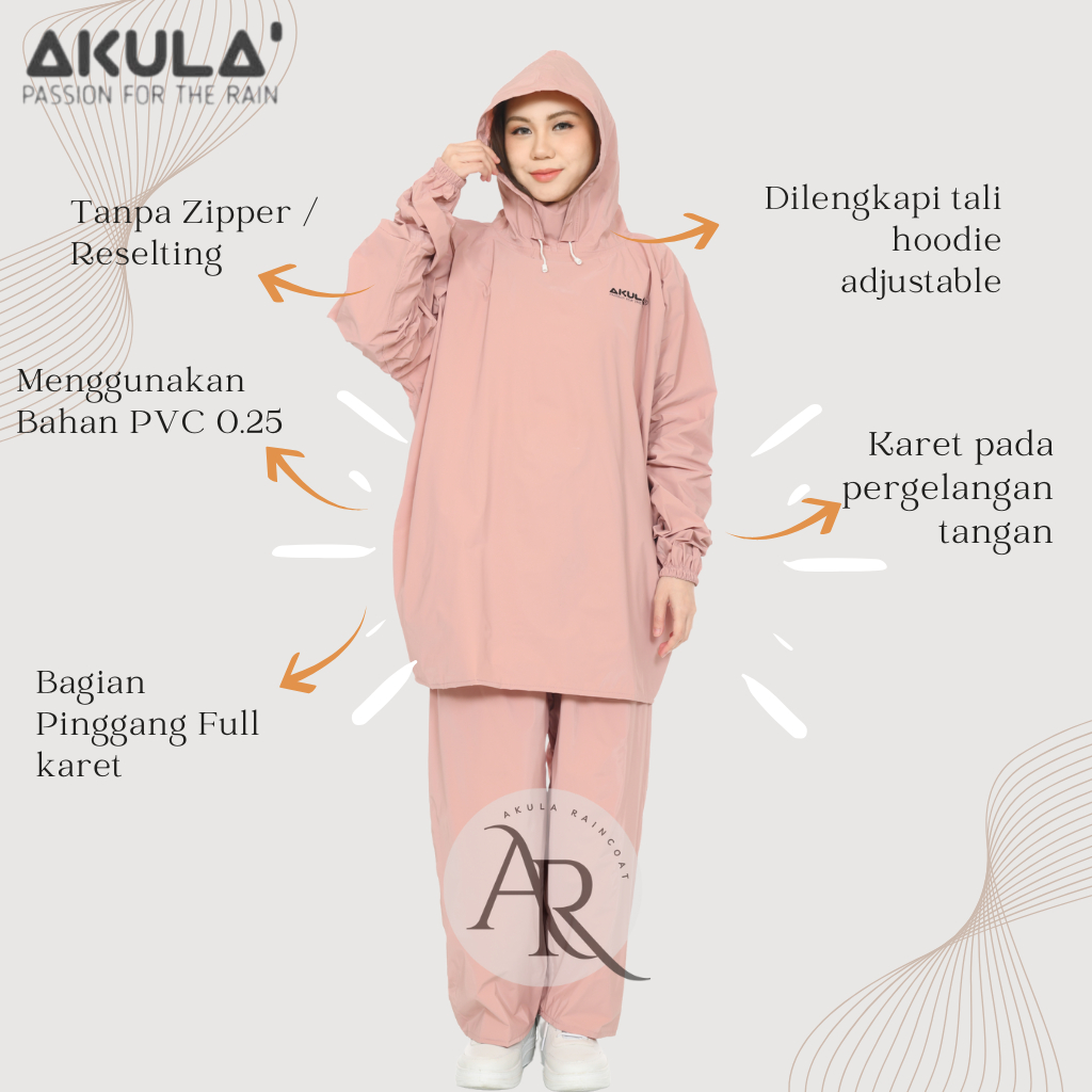 Jas Hujan Hoodie Pria Wanita Bahan PVC Tebal dan Anti Rembes by Akula