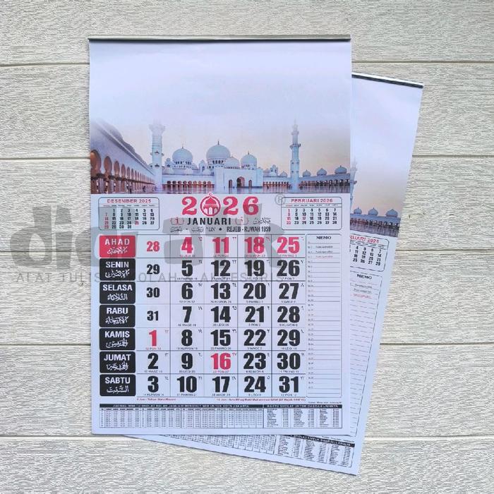 Kalender Kerja Arab Tahun 2026 Uk Kecil 12 Lembar Kalender Dinding Gambar Mesjid - DWI BULAN KECIL