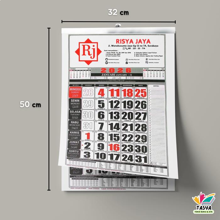 Kalender Sablon Ukuran Tanggung Tahun 2026 (Paket Pembelian 50 PCS) - Sablon 1 Warna