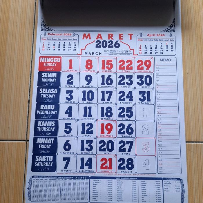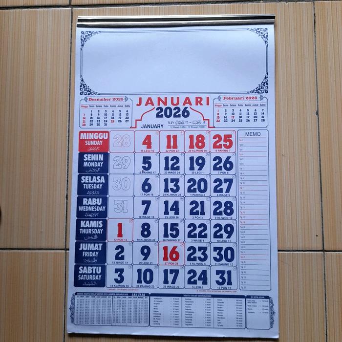 Kalender Arab Memo Tahun 2026 untuk Dinding