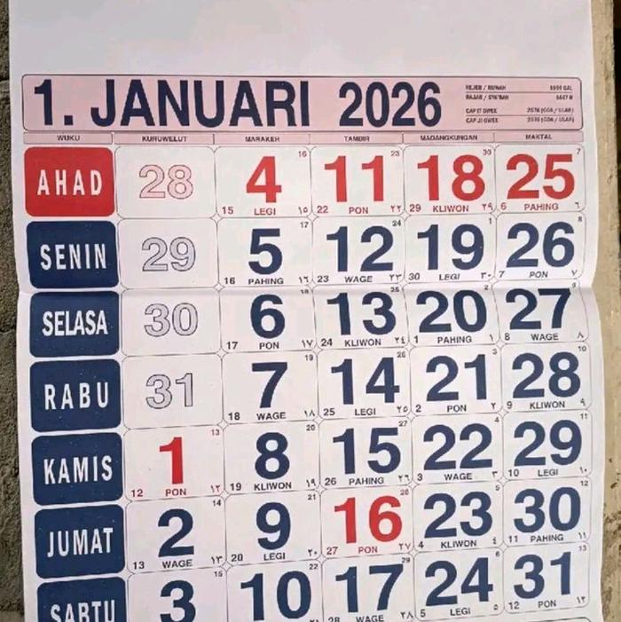 KALENDER BULANAN 2026 KALENDER DINDING 2026 KALENDER ALMANAK 2026 KALENDER JAWA 2026 - jumbo hitam