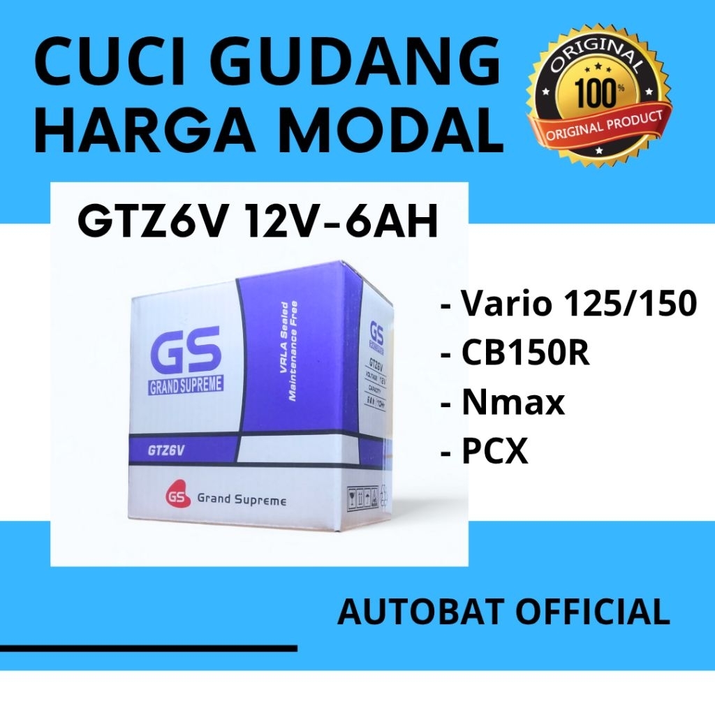 Aki Motor GTZ6V Satria Fu. Vario 125 & 150. Nmax. GS 12V 6Ah