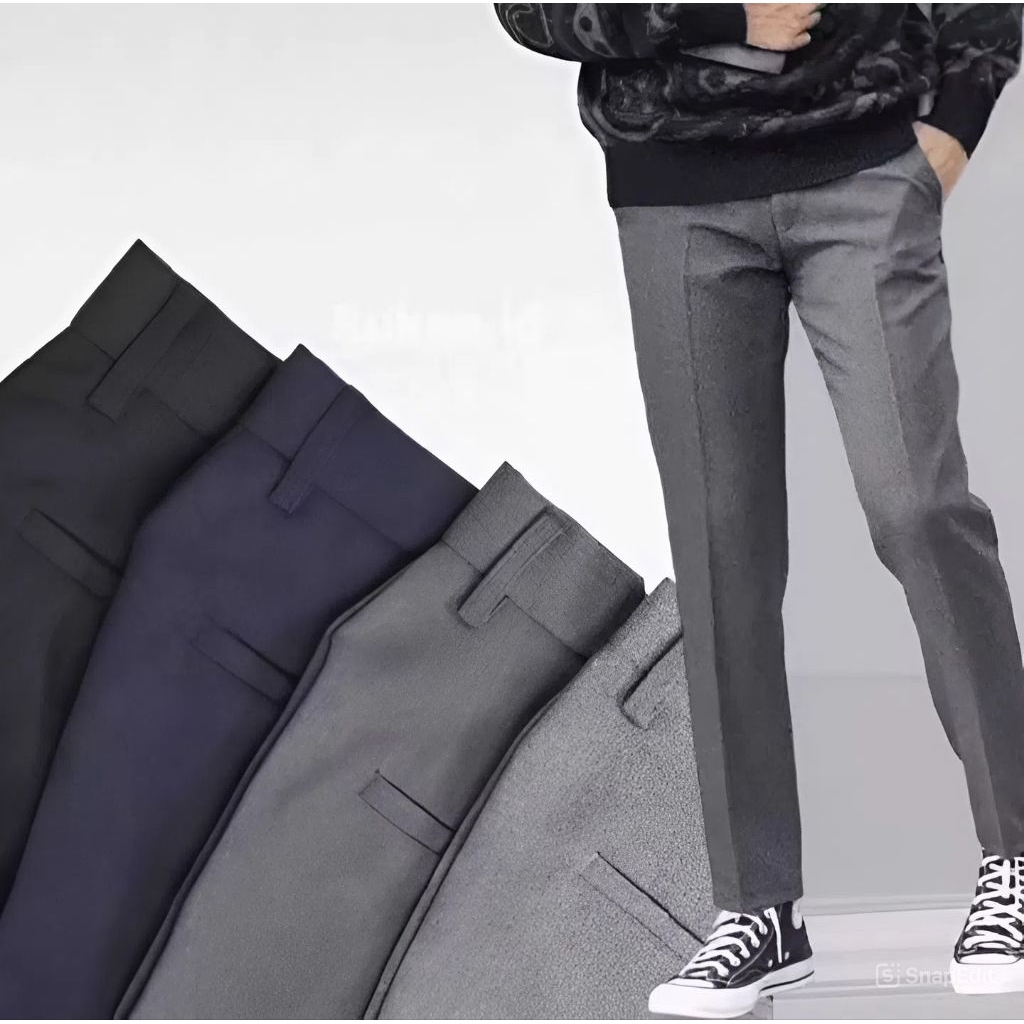 EMSAH - celana formal pria slim fit bahan dasar kain woll premium adem nyaman di pakai celana panjang kantor hitam