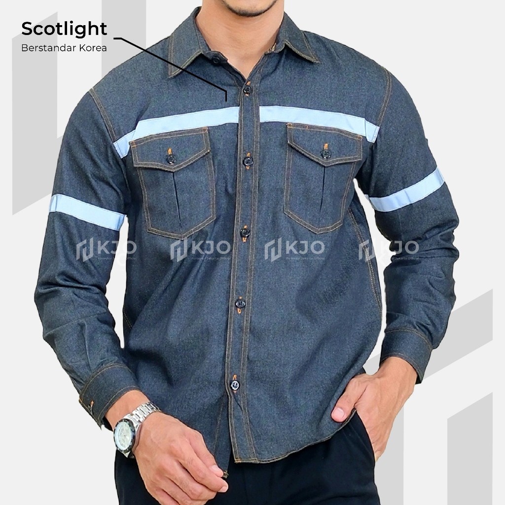Baju Wearpack Kemeja Safety Jeans K3 Proyek Tambang Lengan Panjang - Pakaian Seragam Werpak Kerja Atasan Scotlite Lapangan Warna Hitam Pria Wanita