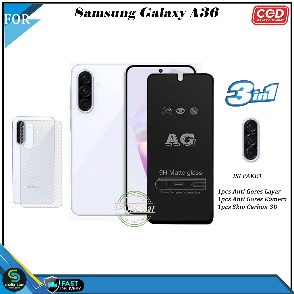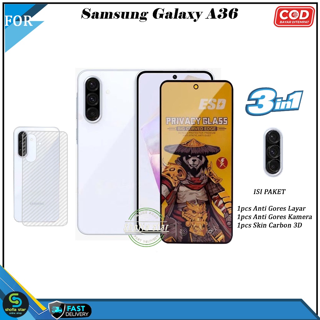 Paket 3in1 Tempered Glass Ceramic Spy Samsung A56 A36 A24 4G A34 5G A54 5G M14 5G A14 4G/5G A15 4G 5G A25 5G A55 5G M54 5G Anti Gores Anti Spy Full Layar