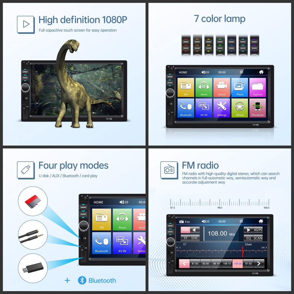 ✦Ready ya,✦GEARELEC universal Head Unit Double Din 7 Inch MP5 Bluetooth Audio Car MP3 MP5 Player In Touch Screen Radio Dan Kamera Mundur Mobil LED