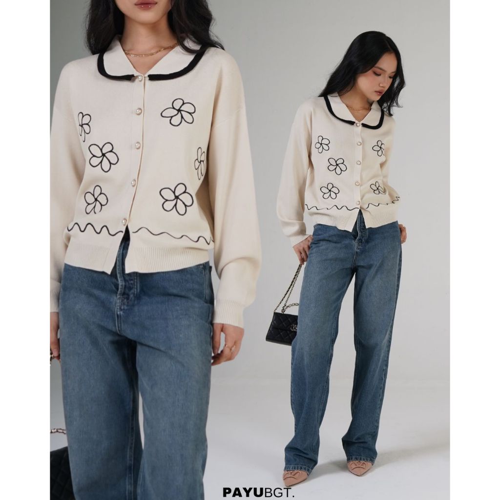 PAYUBGT - Cardigan Rajut Helena Monocrome - Knitwear Cardigan - Cardigan Wanita