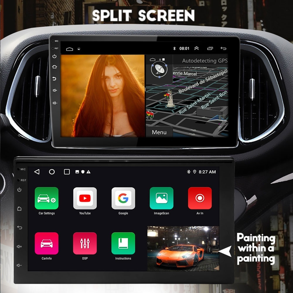 Head Unit Android 15 8+64GB/8+128GB 9Inch Carplay Android Auto DSP Pendingin Fan 2Din Wi-Fi GPS USB,Bluetooth FM/AM Split-layar IPS 720p Kamera Mundur Universal 98 PERSEN Mobil