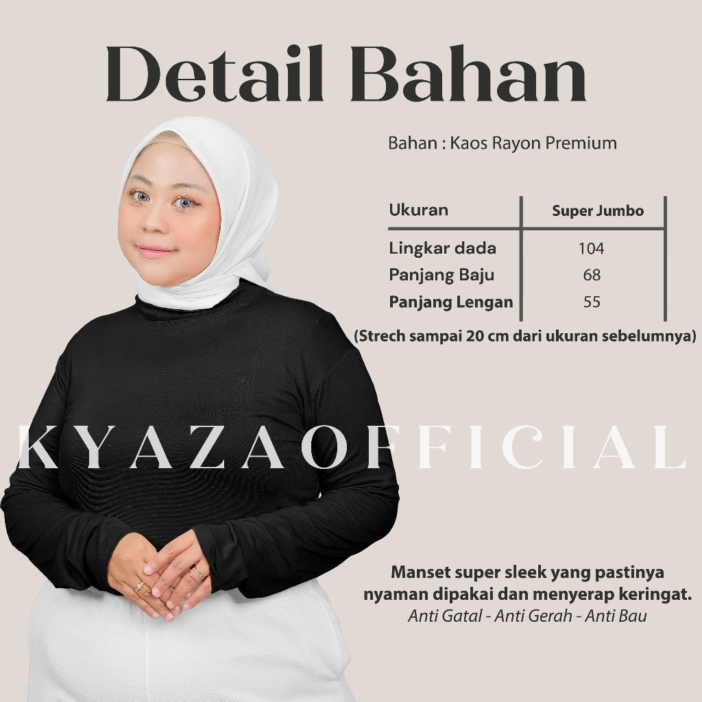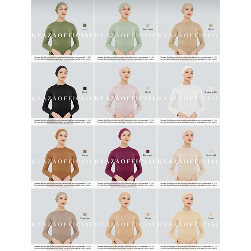 KYAZA - KATALOK 1 Manset Baju Kaos Rayon Premium Basic Turtle Neck, Adem & Menyerap Keringat