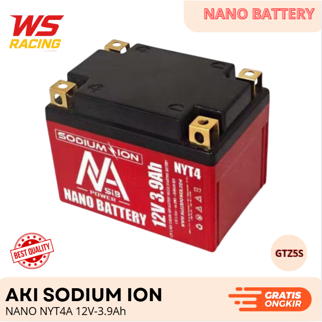 AKI KERING MOTOR SODIUM ION NANO HONDA BEAT SUPRA X125 VARIO 110 MIO J M3 MIO GT XEON SOUL YTX4A 3,9Ah