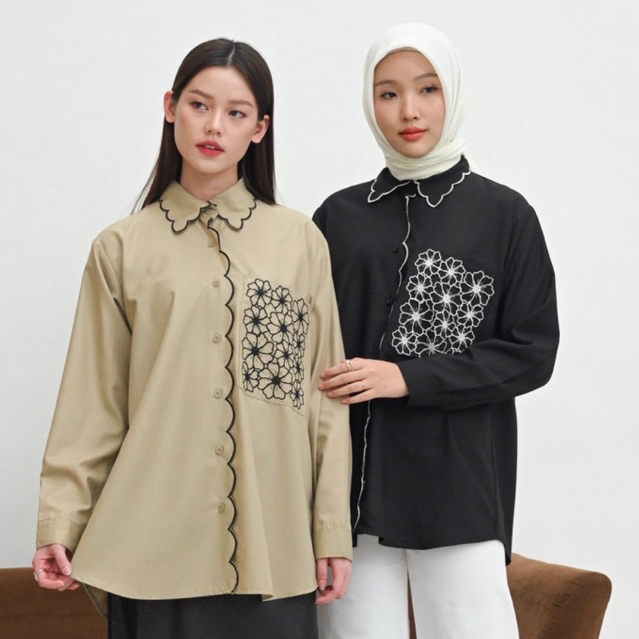 DAWNBLISSCO - AUGUST Shirt | Kemeja Bordir | Kemeja Lengan Panjang | Kemeja Wanita | Atasan Kerja | Bordir Premium
