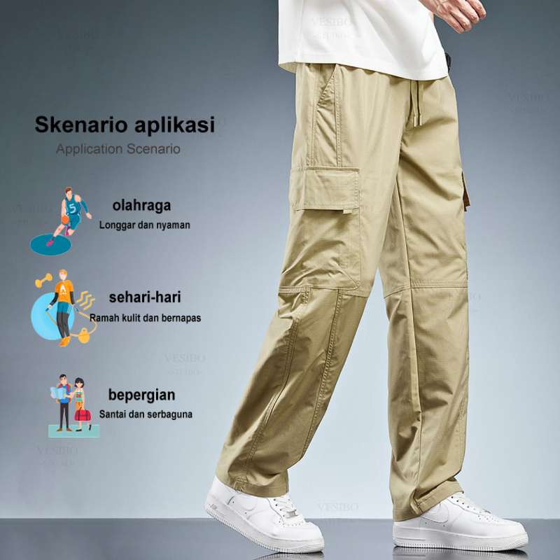 Celana Cargo Panjang Pria Korean Style Oversize Banyak Kantong Fashion Celana Pria Casual Cargopants