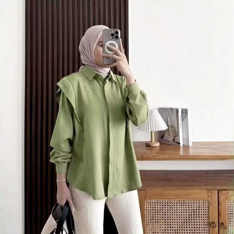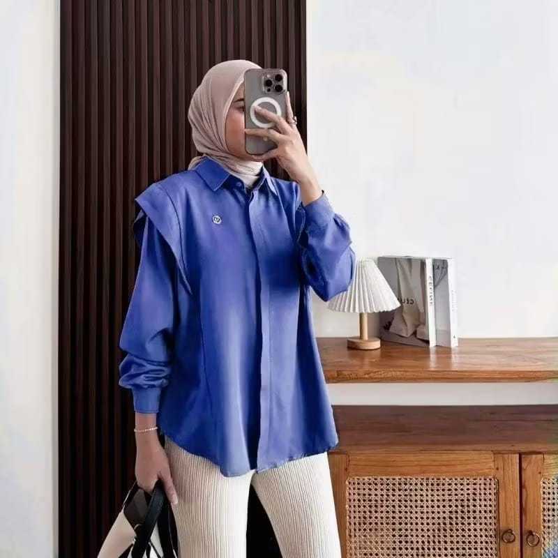 [NEXA] Baju Kemeja Polos Wanita Korea Kerut Kekinian Blouse Kemeja Wanita Katun Premium Baju Kemeja Wanita Terbaru