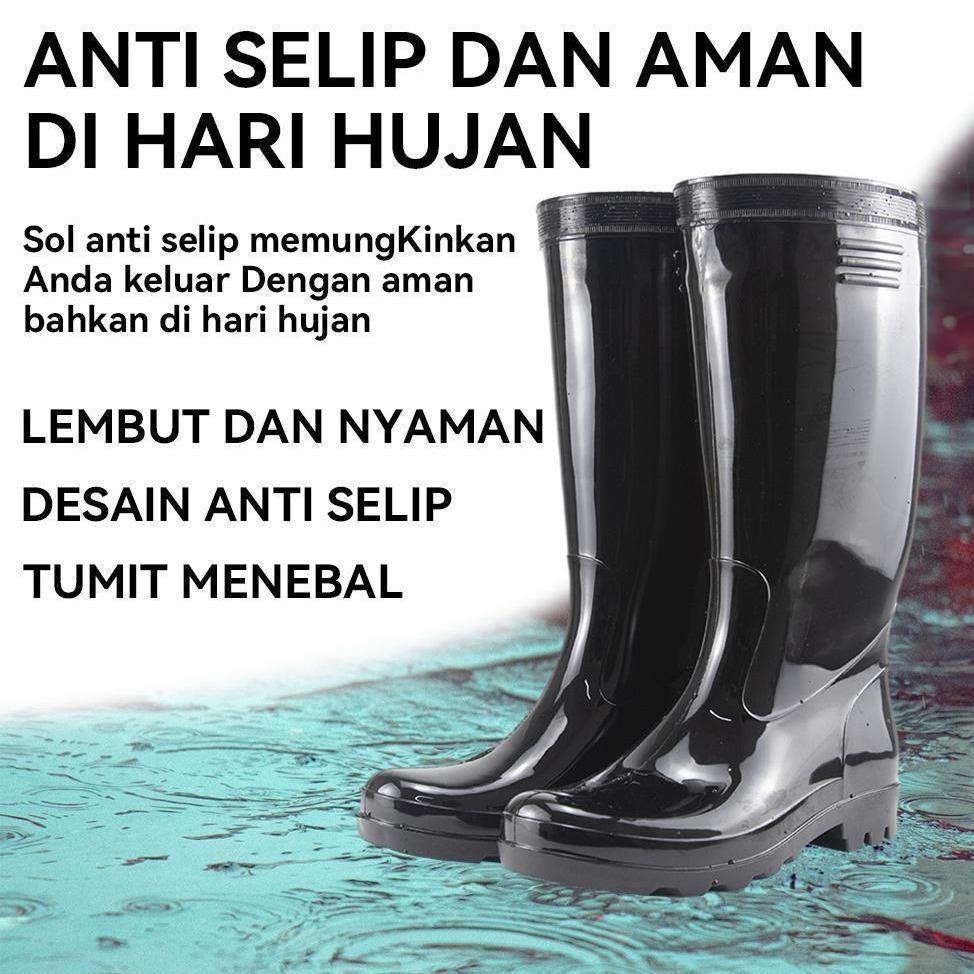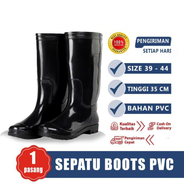 Sepatu Boots Hitam Tinggi 35cm PVC Premium Anti Air, Anti Gigitan Ular, Anti Licin