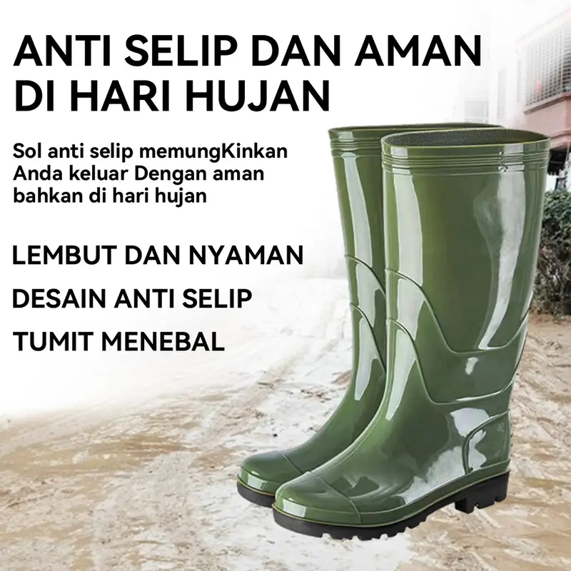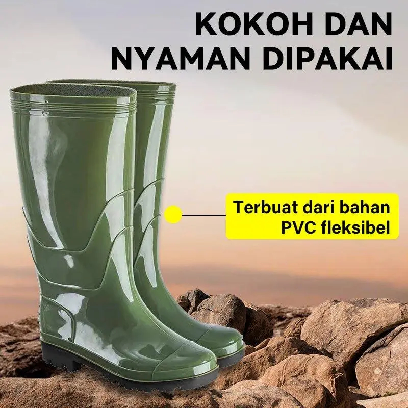 SEPATU BOOTS KARET HIJAU SEPATU PROYEK SEPATU PRIA WANITA BERKEBUN BAHAN PVC ANTI AIR MURAH / SEPATU BOOT PRIA